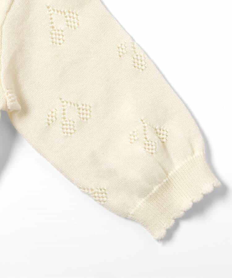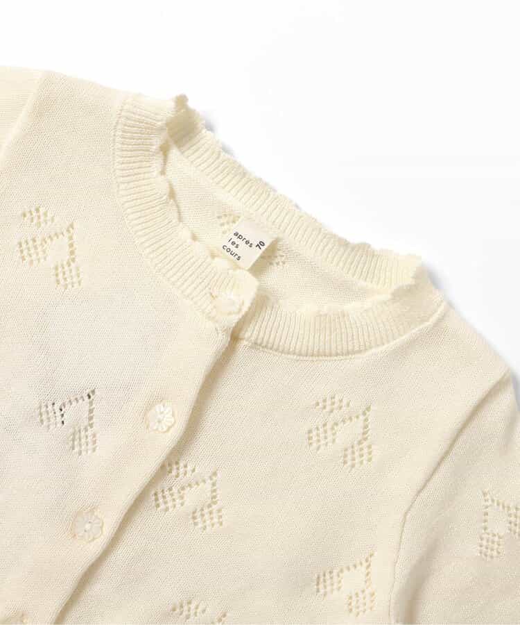 【1/26(月)21:00~販売】apres les cours(アプレレクール)のカーディガン・ボレロ「サクランボ柄ニットカーディガン」は、肌寒い時にサッと羽織れる便利アイテム◎着回し力抜群で1枚あると大活躍!インナーとの重ね着も楽しんで*<お取り扱いのご注意>
