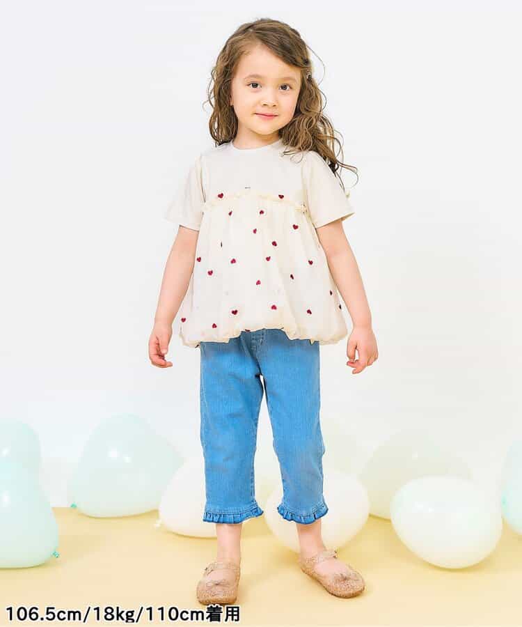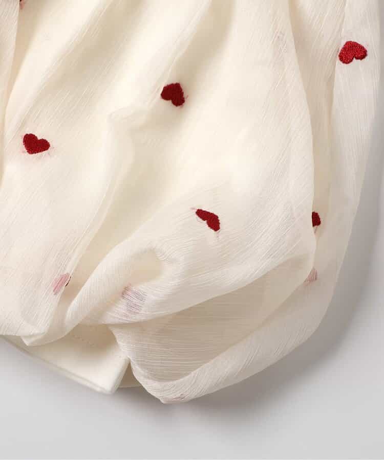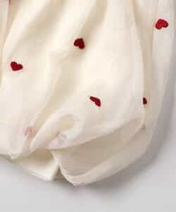 ちりばめられたハートの刺しゅうがふんわりかわいらしい・・