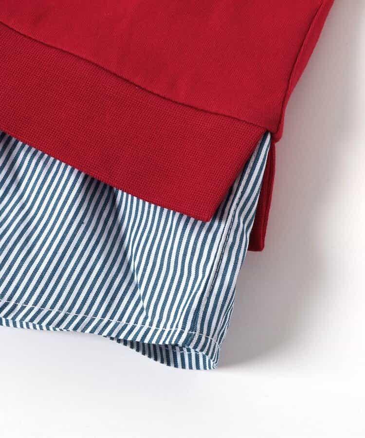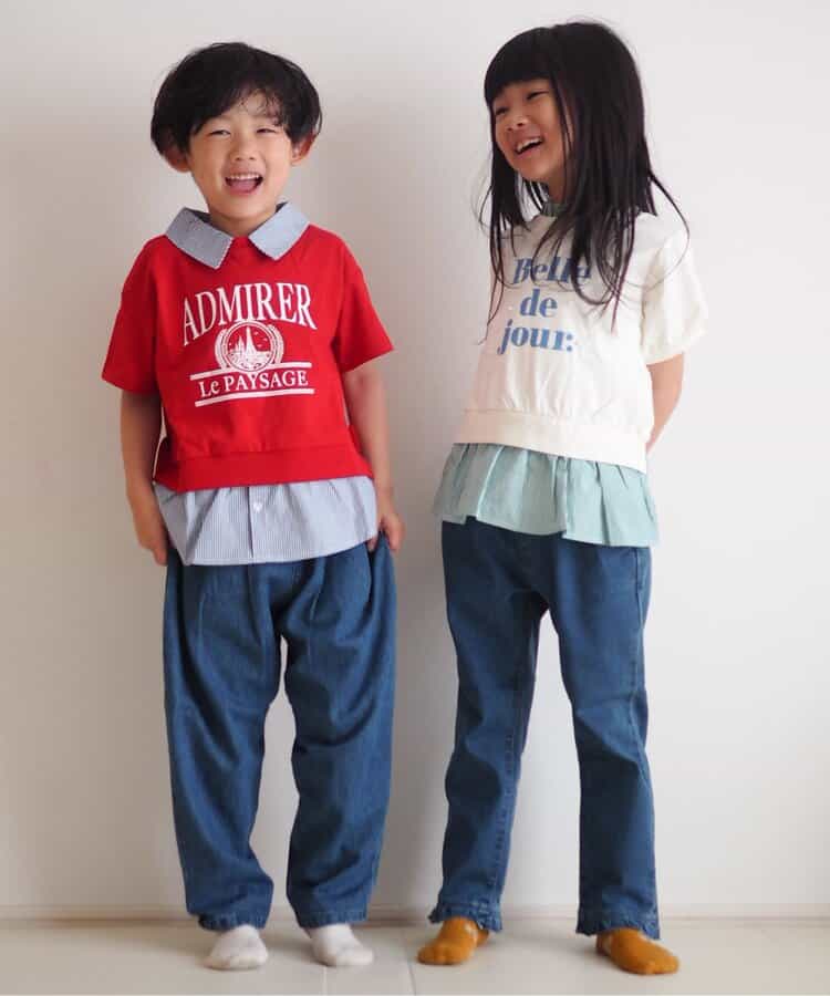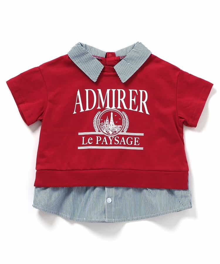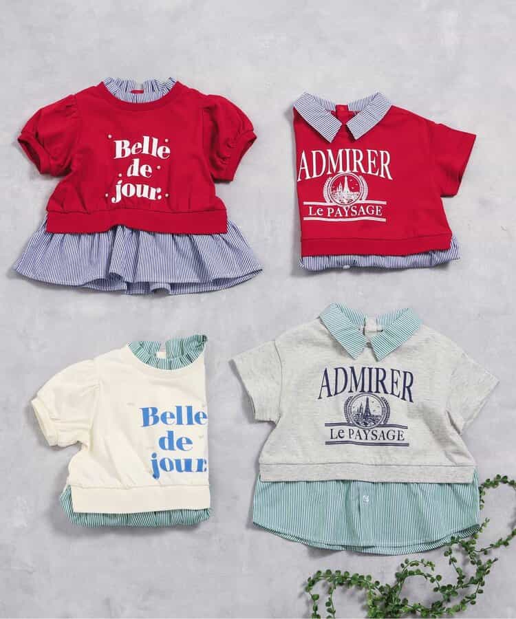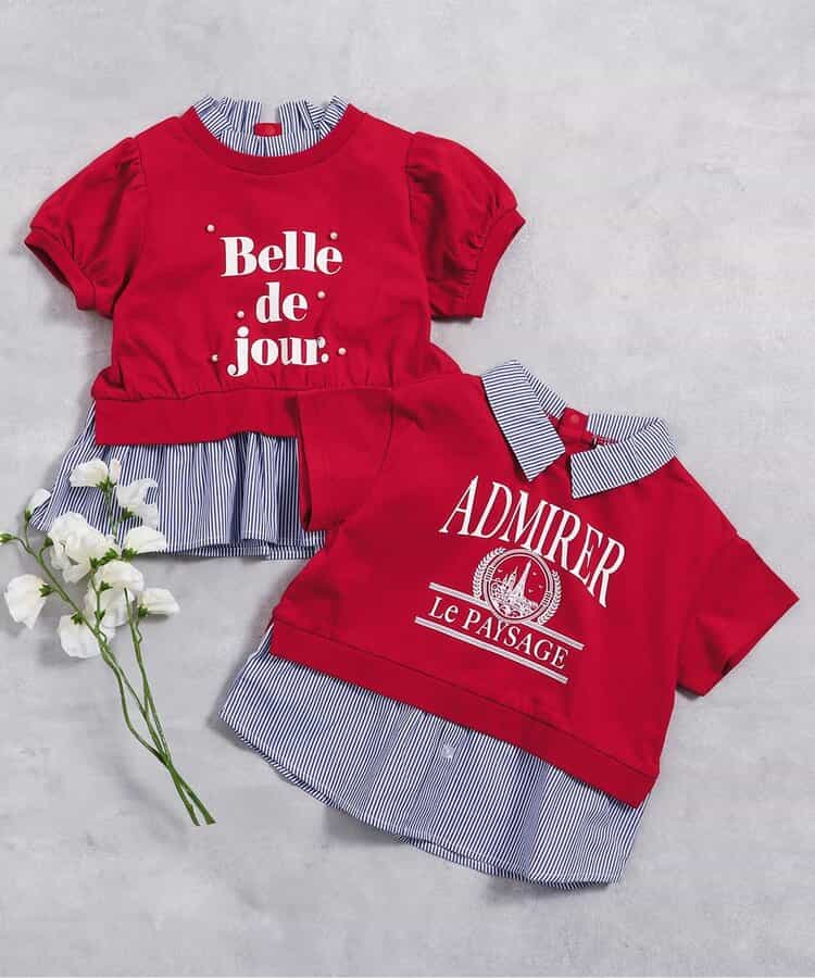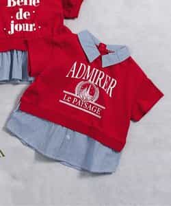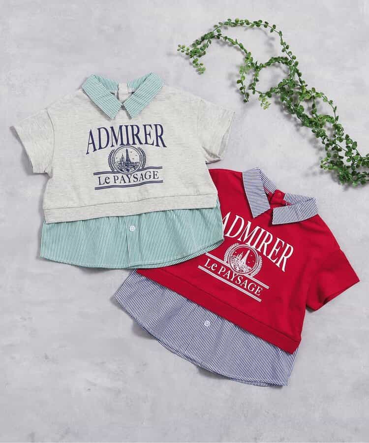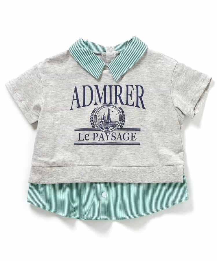 apres les cours(アプレレクール)の半袖Tシャツ「【リンク】シャツレイヤードロゴTシャツ」は、ナチュラルなスタイルにさりげなくデザインをプラスしたおしゃれアイテム*お揃いの「フリル襟レイヤードロゴTシャツ」はこちら >>