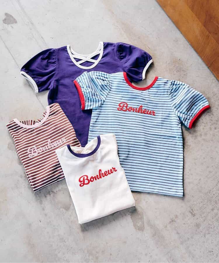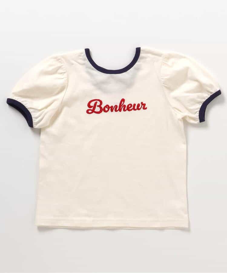 胸元のロゴがほどよいアクセントになり、シンプルなのにガーリーな印象に♪