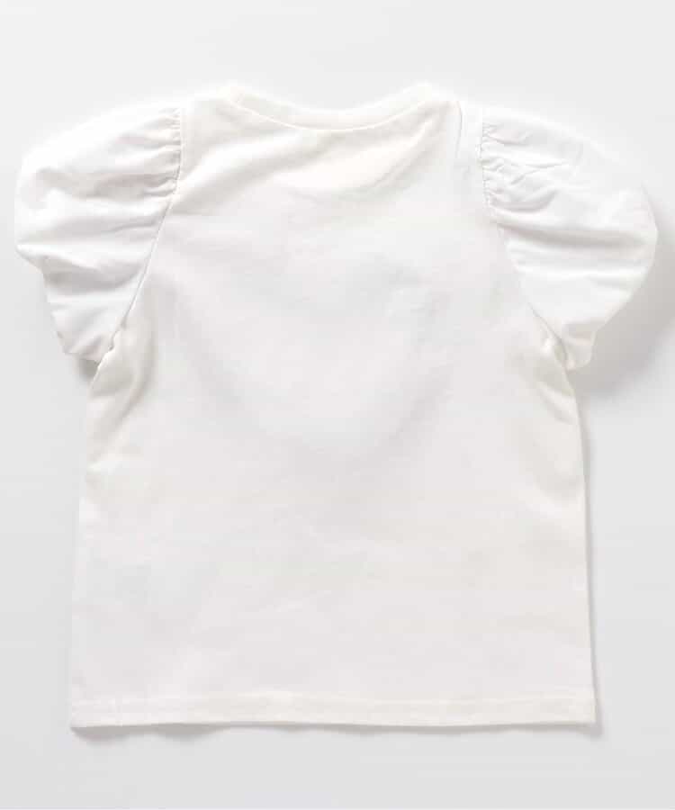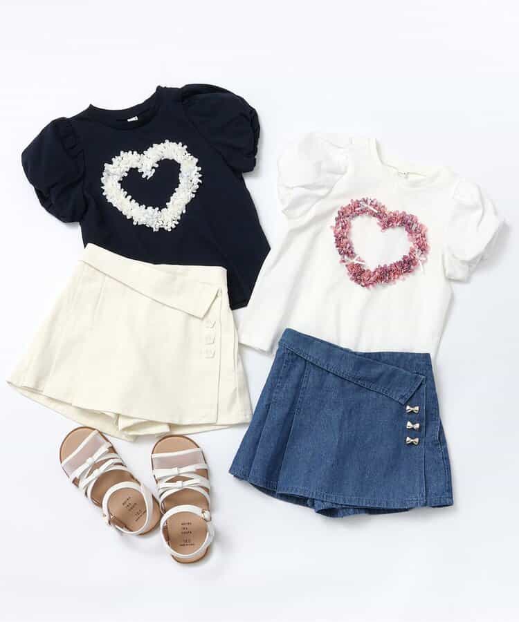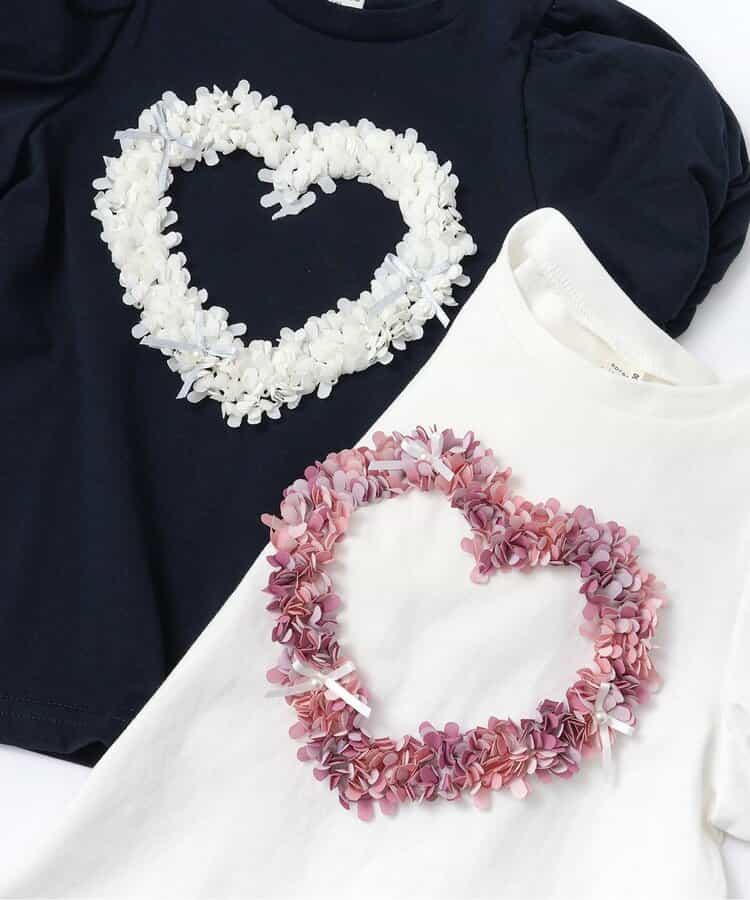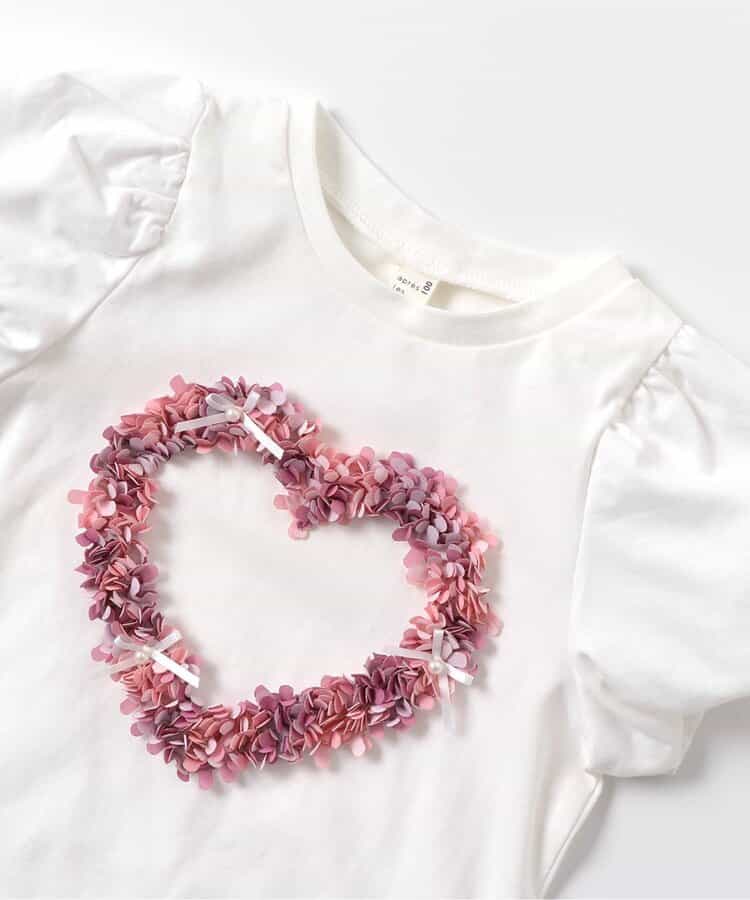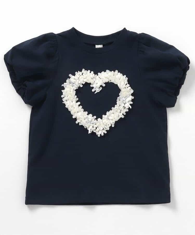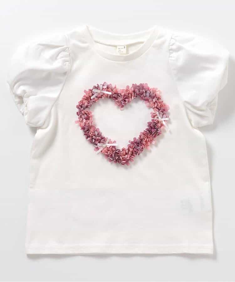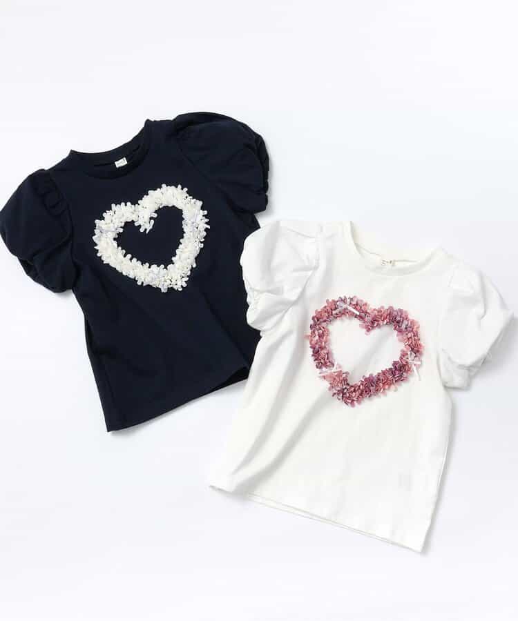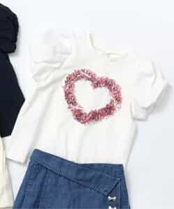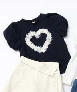 apres les cours(アプレレクール)の半袖Tシャツ「ハートモチーフバルーンスリーブTシャツ」は、ナチュラルなスタイルにさりげなくデザインをプラスしたおしゃれアイテム*