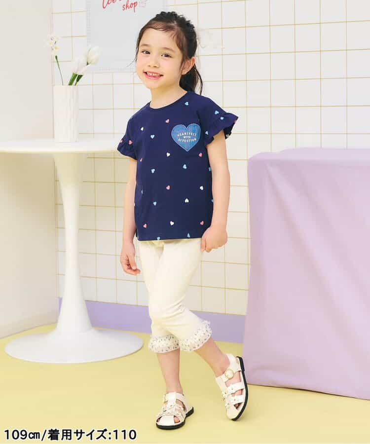 WEB限定 ハート・フラワーアップリケフリルTシャツ
