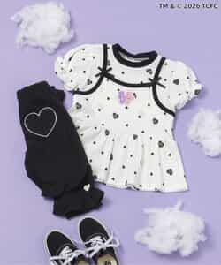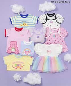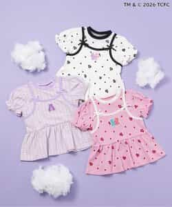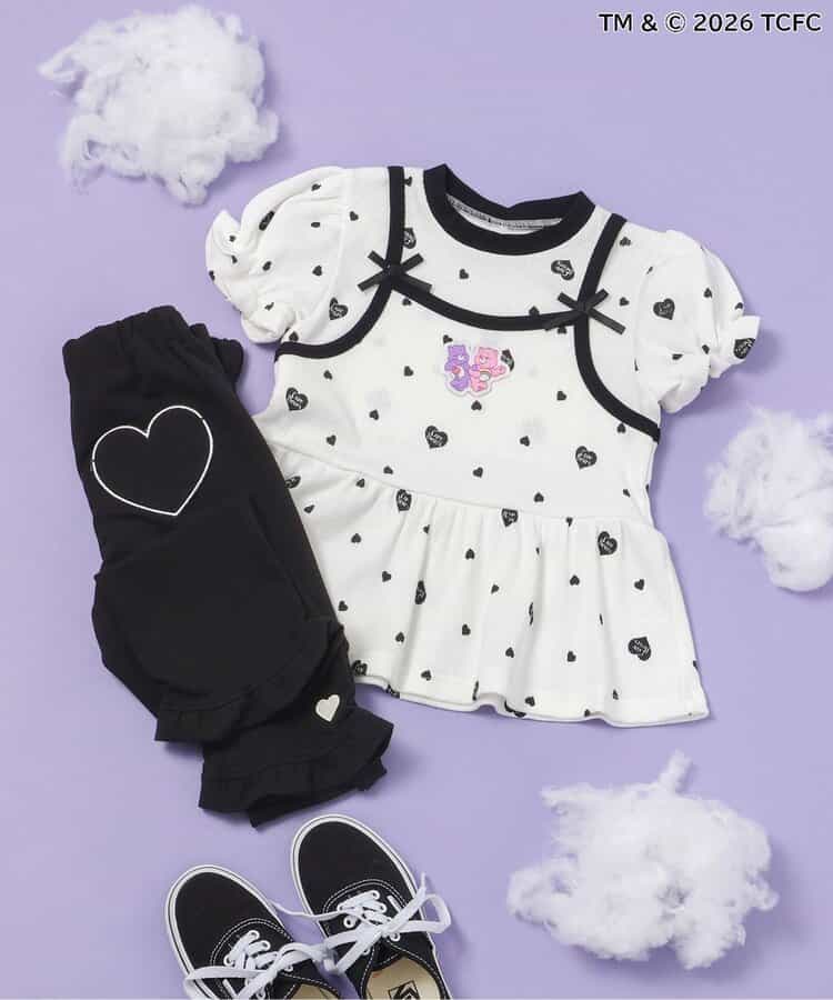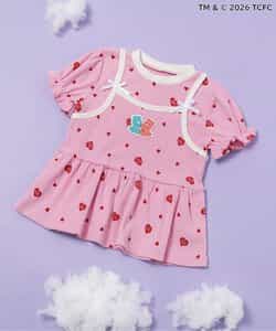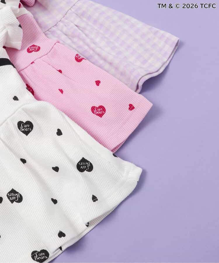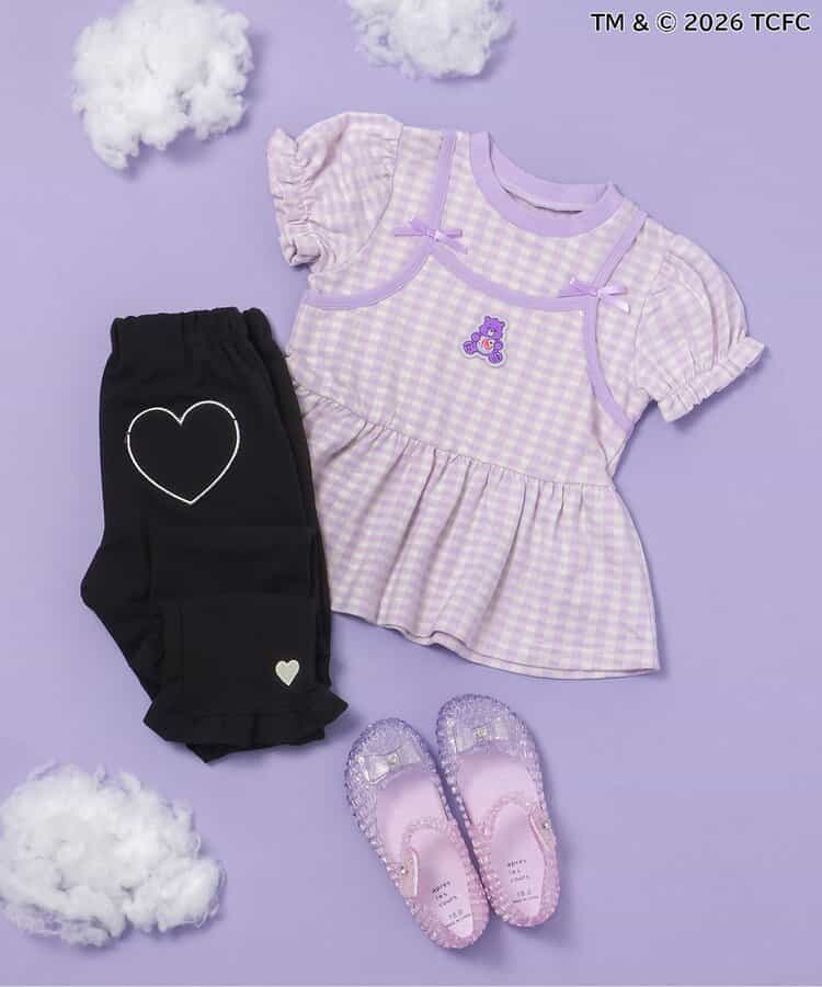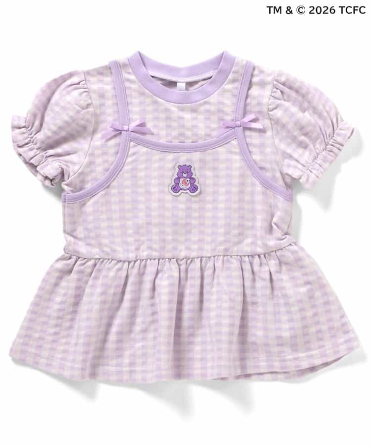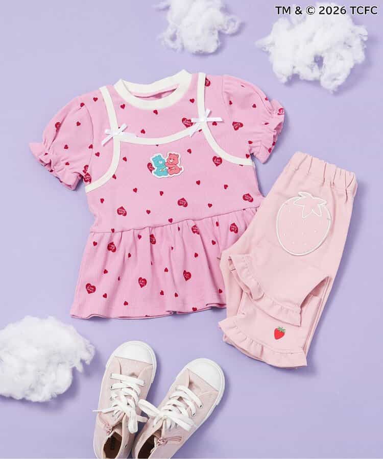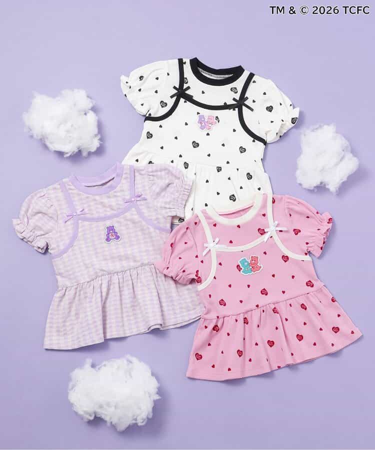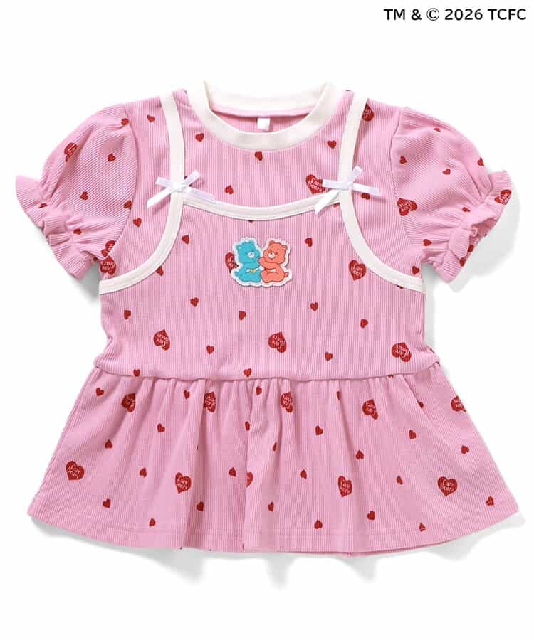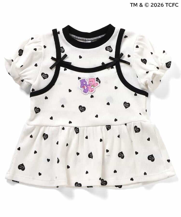 【3/31(火)お昼12時~発売】≪子供服 apres les coursの「ケアベア」コレクション≫キャミソールを重ねているようなレイヤード風デザインが魅力のトップス。ふんわり袖やリボンのディテールなど、ときめきがたっぷり♪お出かけやイベントにもぴったりの、華やかでガーリーなトップスです。
