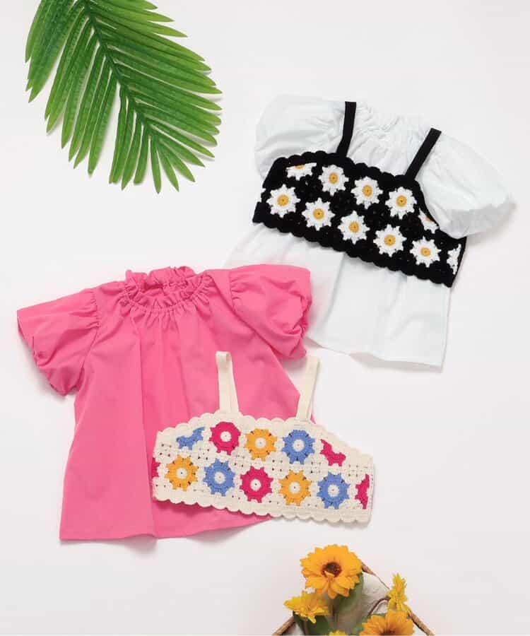apres les cours(アプレレクール)のシャツ・ブラウス「【リンク】フラワーニットビスチェ&チュニック2Pセット」は、ナチュラルなスタイルにさりげなくデザインをプラスしたおしゃれアイテム*
