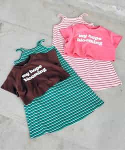apres les cours(アプレレクール)のワンピース「WEB限定 ショート丈ロゴTシャツ×キャミワンピ2Pセット」は、アプレこだわりのデザインで1枚でおしゃれコーデが完成する優秀アイテム♪