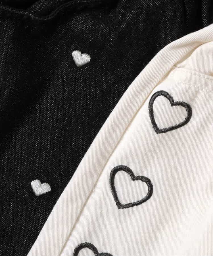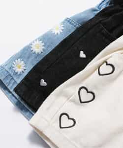 ハートやお花の刺しゅうがコーデのポイントに♪