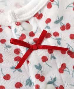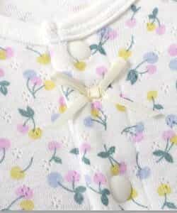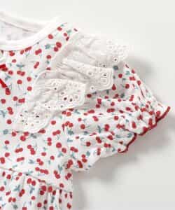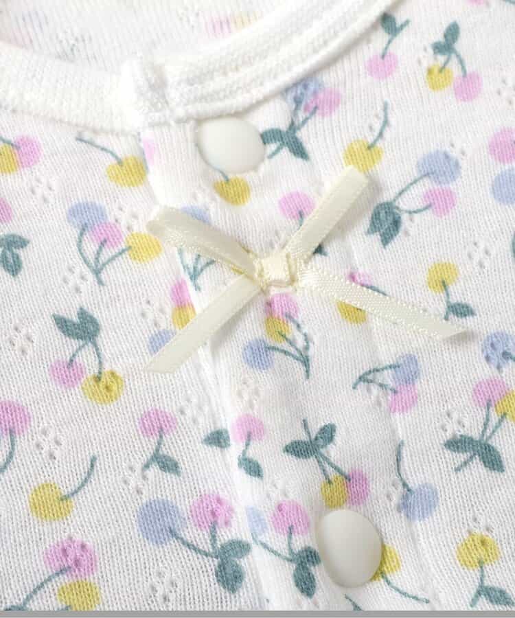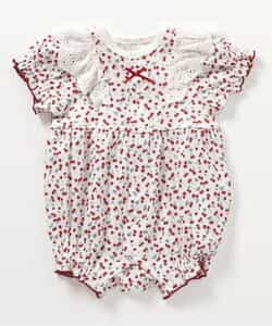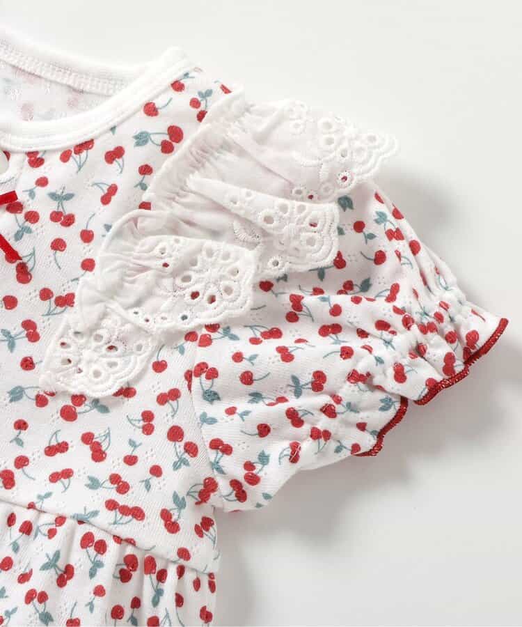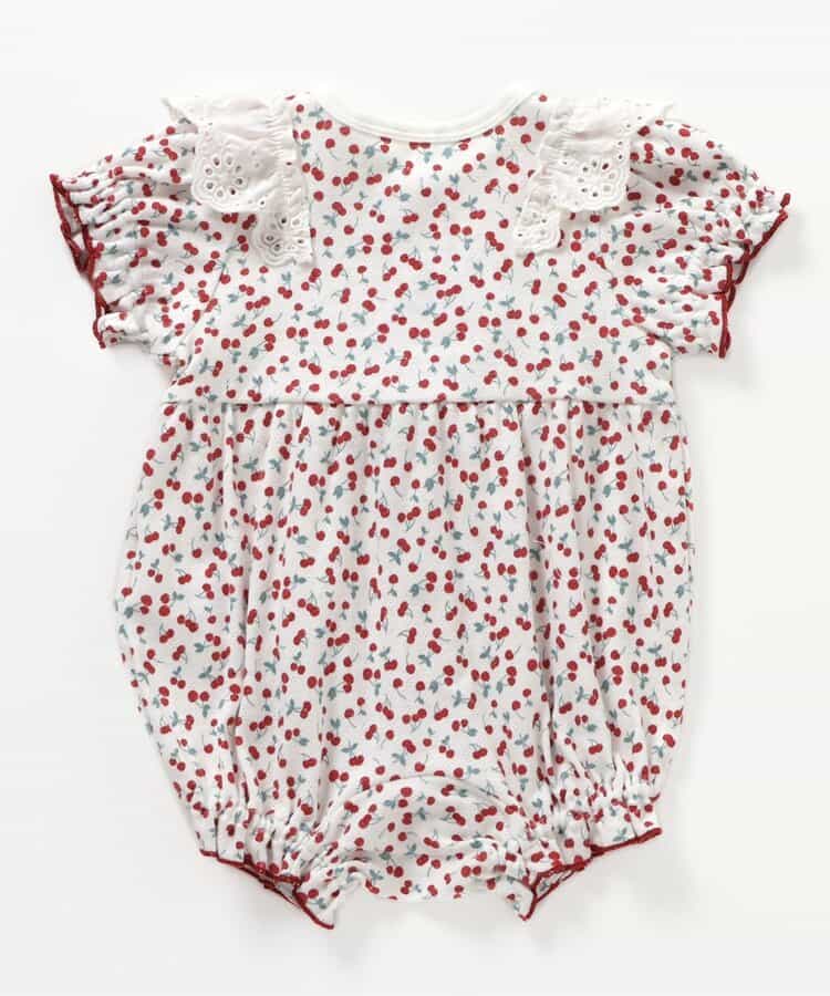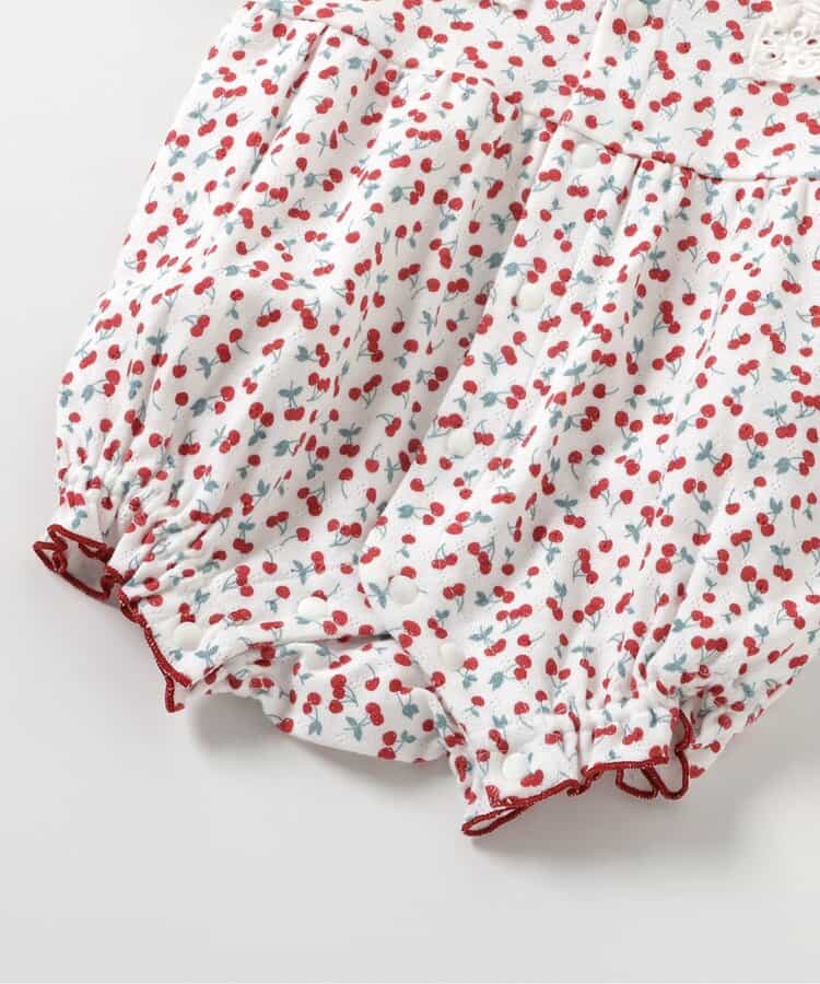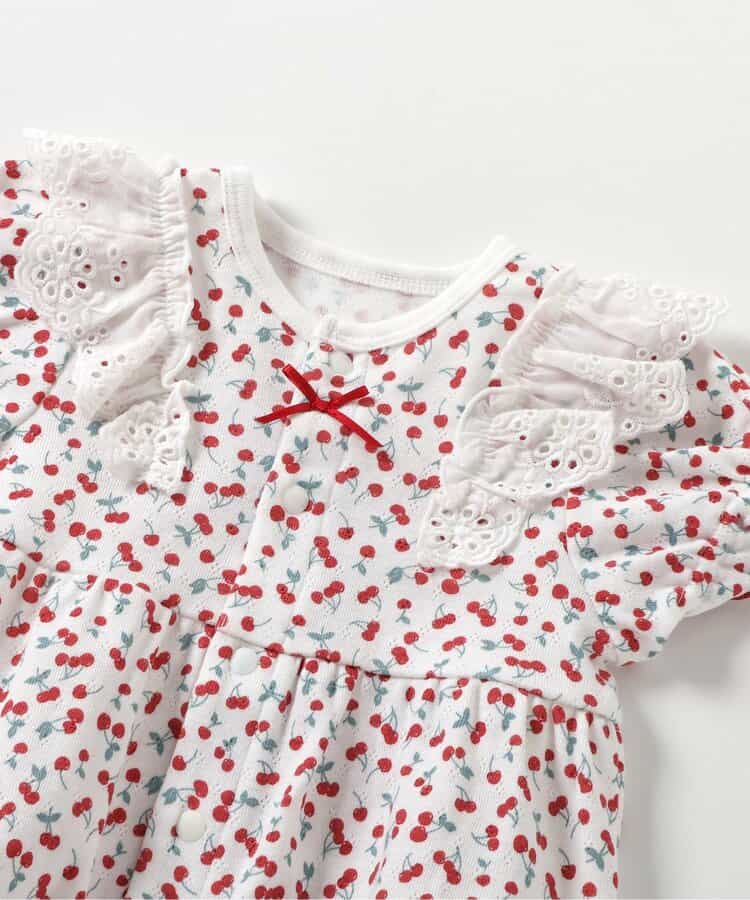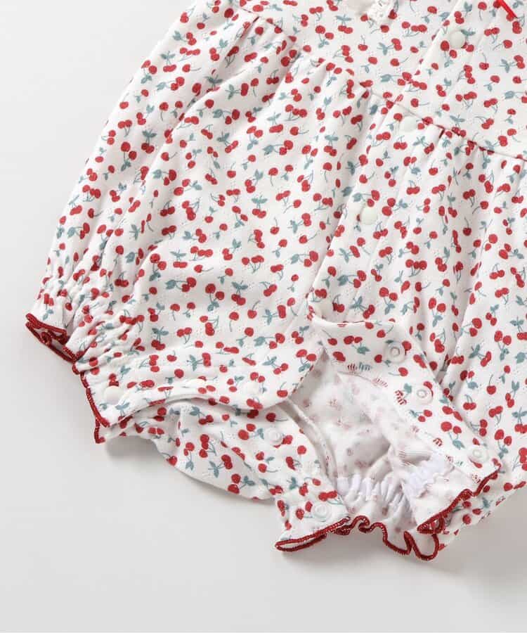 apres les cours(アプレレクール)のカバーオール・ロンパース「サクランボ柄ロンパス」は、やさしいニュアンスのナチュラルなデザイン。ベビーギフトや出産祝いの主役にも♪