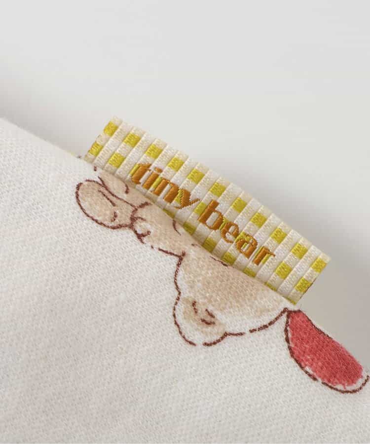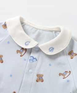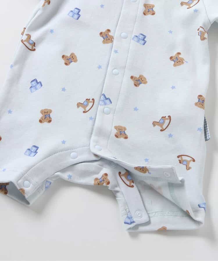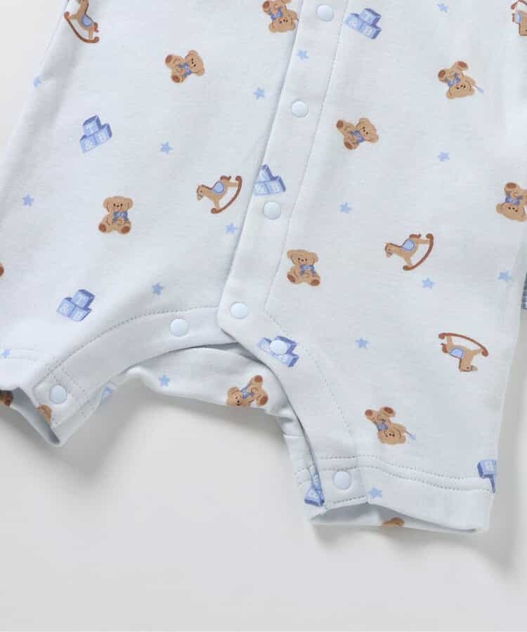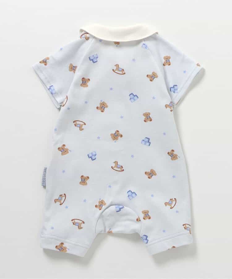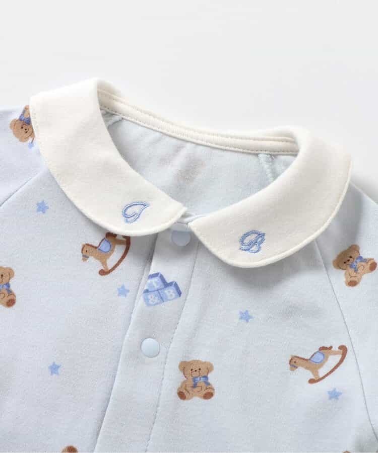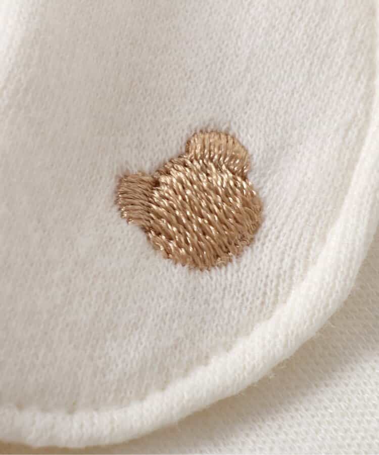 apres les cours(アプレレクール)のカバーオール・ロンパース「tiny bear 衿刺繍ロンパス」は、やさしいニュアンスのナチュラルなデザイン。ベビーギフトや出産祝いの主役にも♪