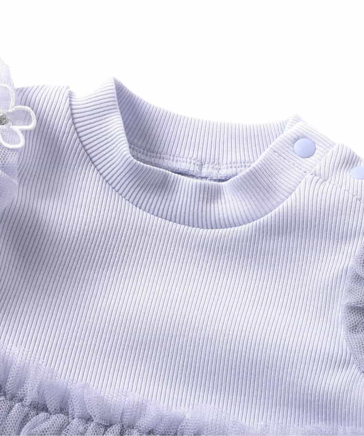 apres les cours(アプレレクール)のカバーオール・ロンパース「【リンク】フラワーチュールロンパス」は、やさしいニュアンスのナチュラルなデザイン。ベビーギフトや出産祝いの主役にも♪