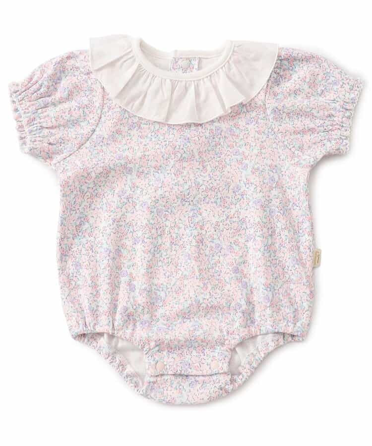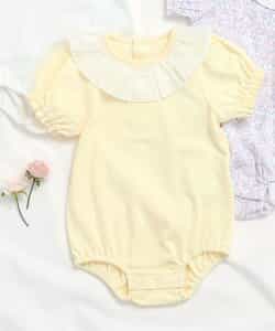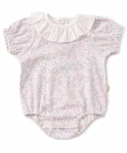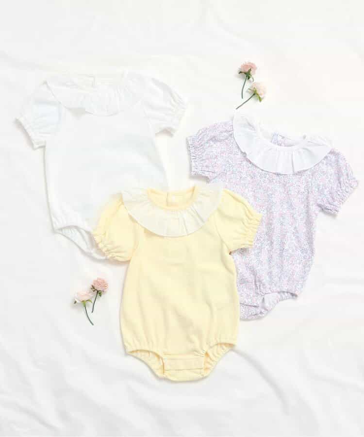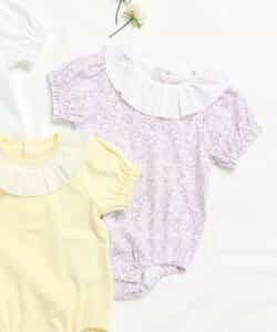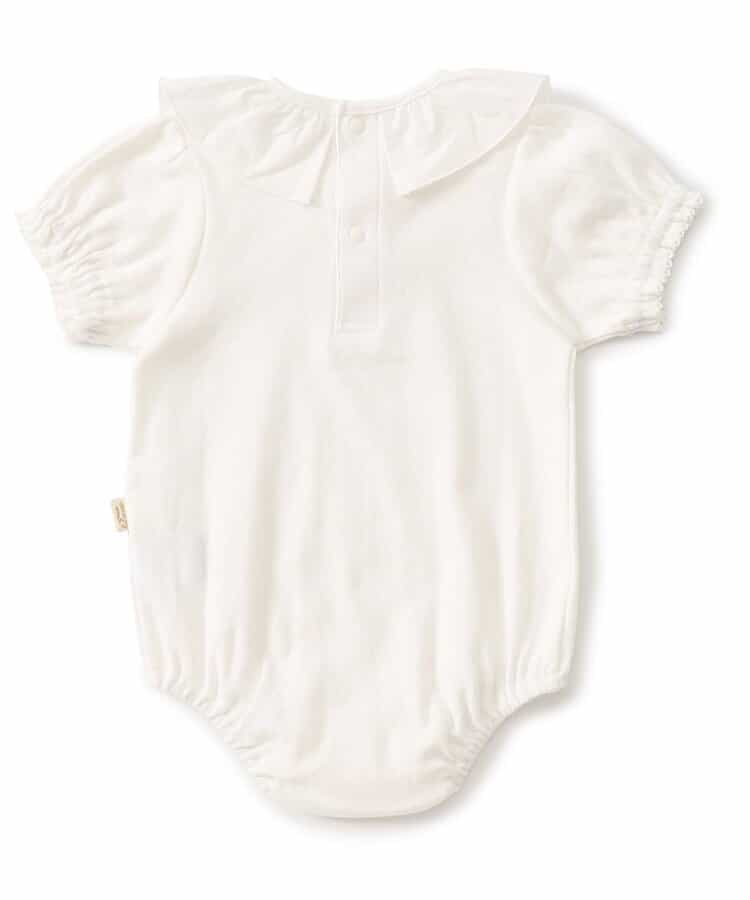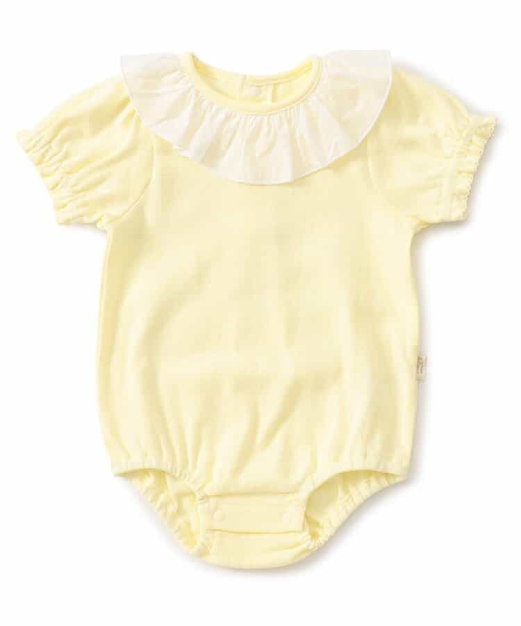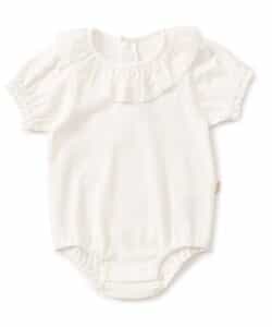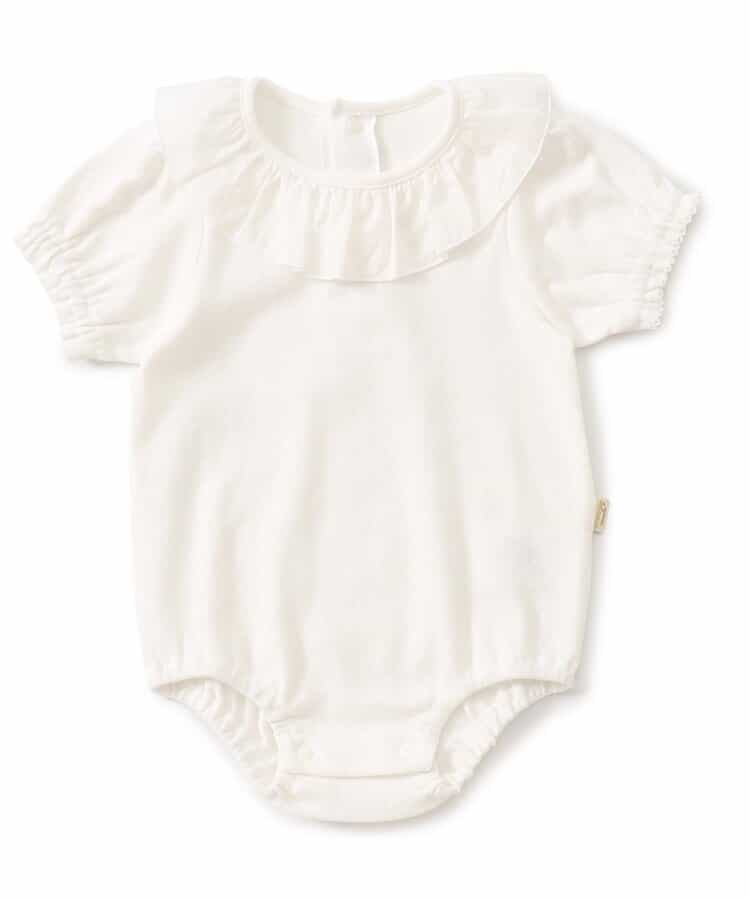 apres les cours(アプレレクール)のカバーオール・ロンパース「衿フリルボディースーツ」は、やさしいニュアンスのナチュラルなデザイン。ベビーギフトや出産祝いの主役にも♪
