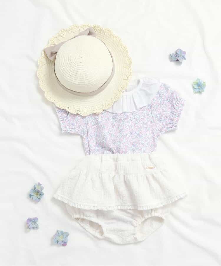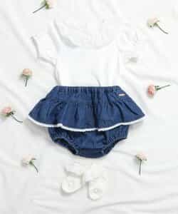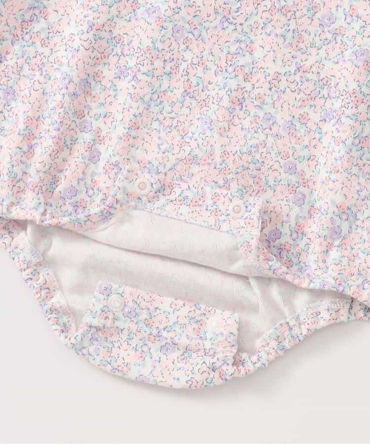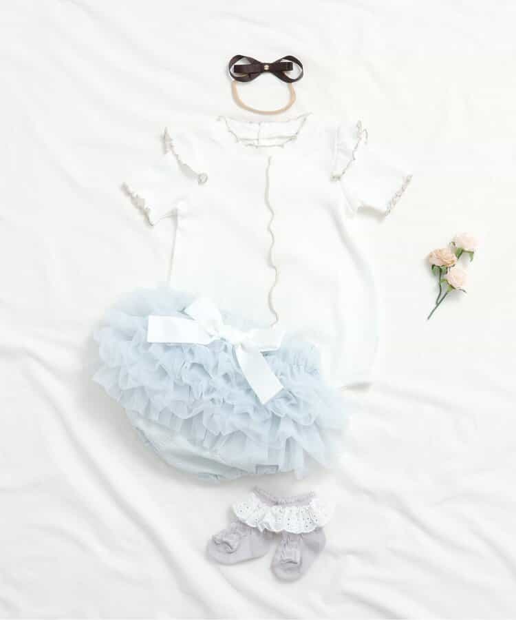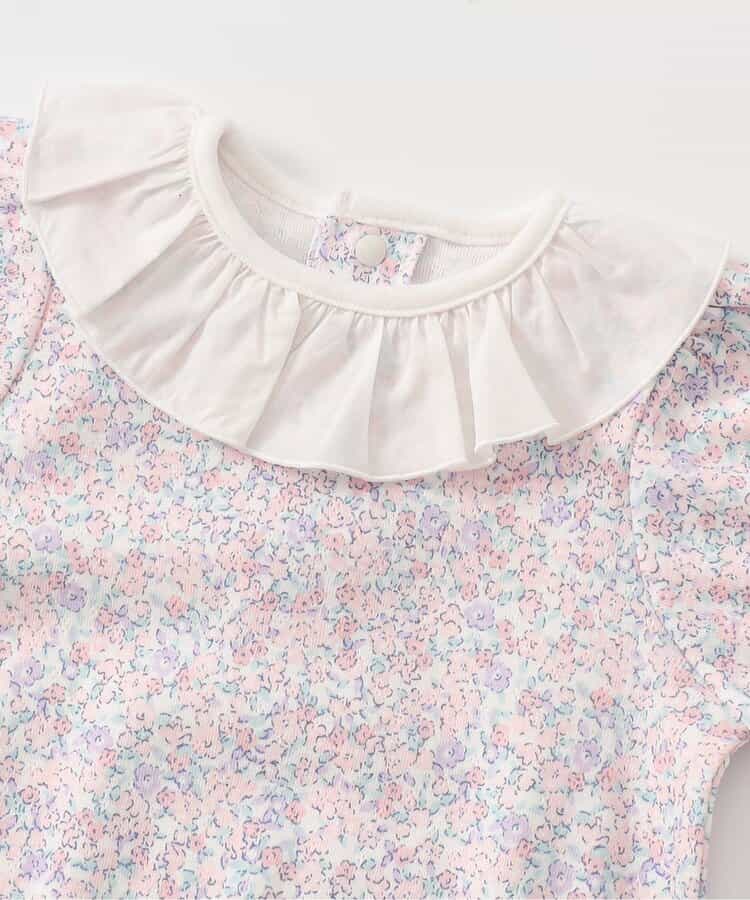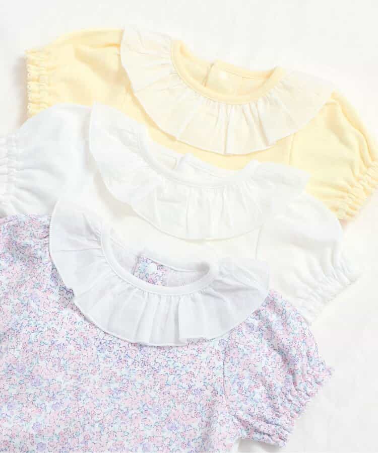 apres les cours(アプレレクール)のカバーオール・ロンパース「衿フリルボディースーツ」は、やさしいニュアンスのナチュラルなデザイン。ベビーギフトや出産祝いの主役にも♪