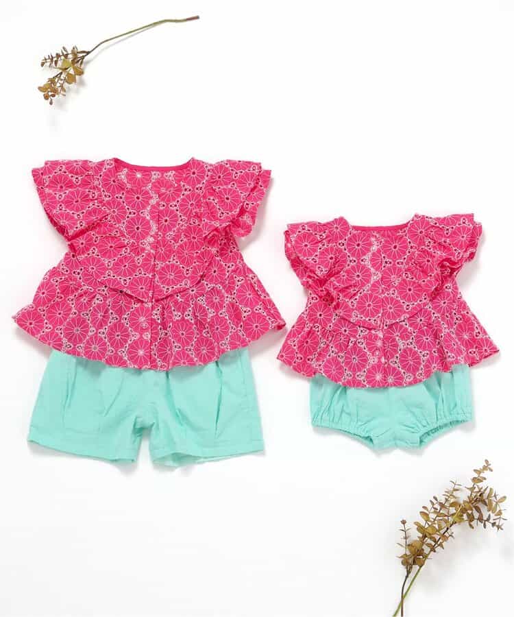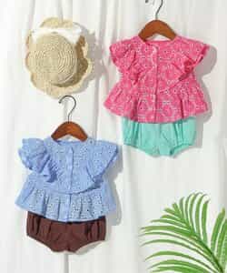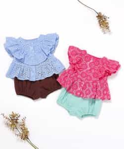 【2/27(金)21:00~販売】apres les cours(アプレレクール)の「ラッフルフリルベビーセットアップ」は、やさしいニュアンスのナチュラルなデザイン。ベビーギフトや出産祝いの主役にも♪