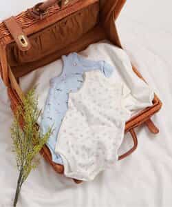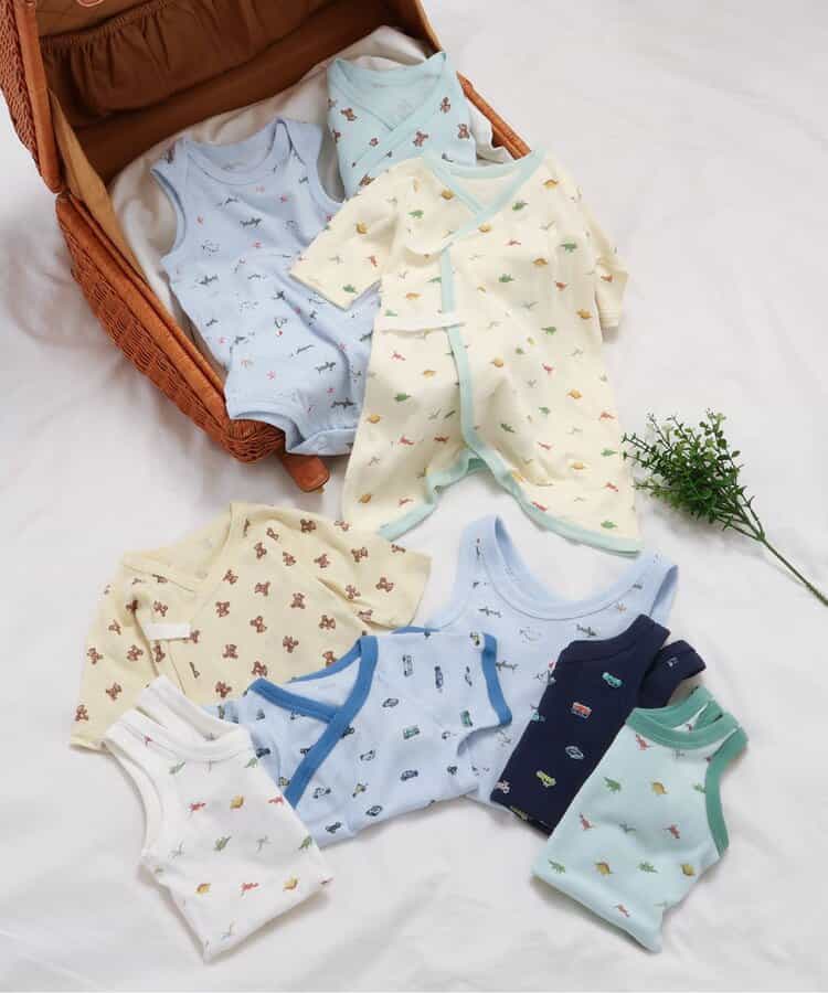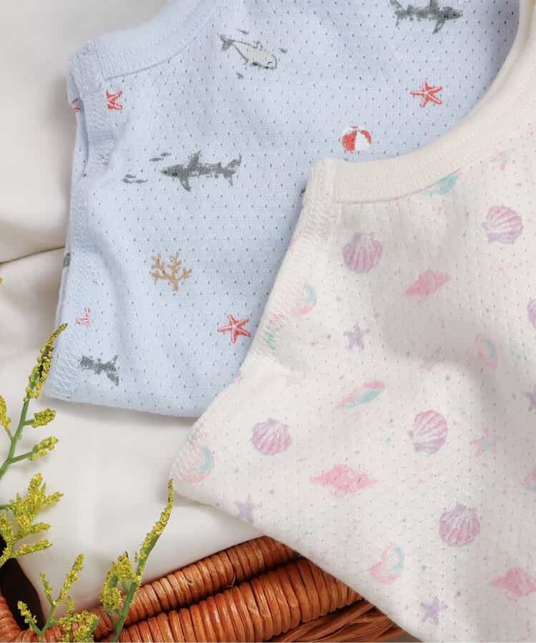 【1/22(木)21:00~販売】apres les cours(アプレレクール)の肌着「ベビーメッシュ肌着 総柄」は、やさしい色合いとデザインでベビーギフトや出産祝いにもおすすめ*