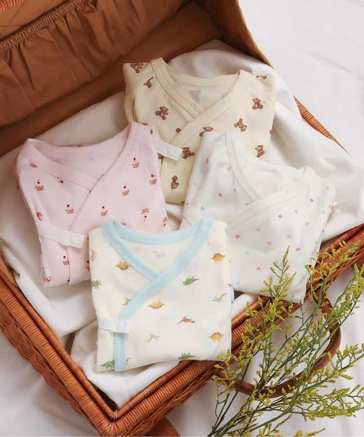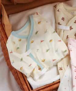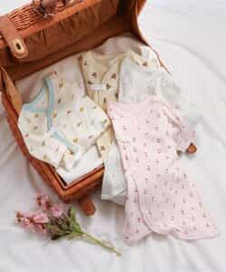 【1/22(木)21:00~販売】apres les cours(アプレレクール)の肌着「ベビー長袖フライスコンビ肌着 総柄」は、やさしい色合いとデザインでベビーギフトや出産祝いにもおすすめ*