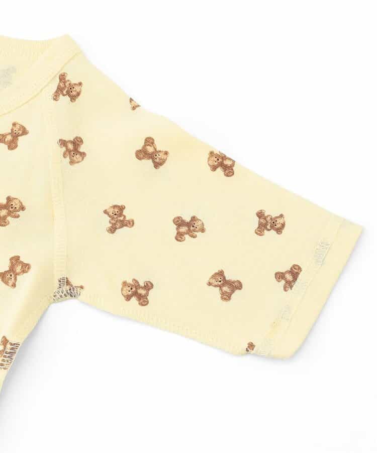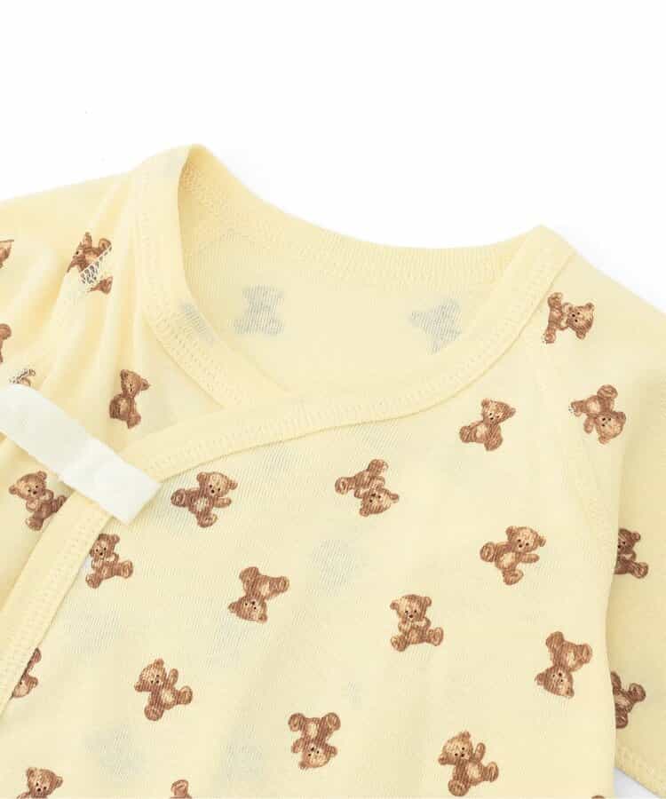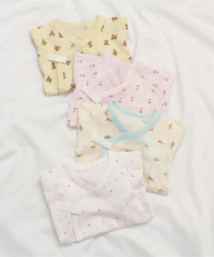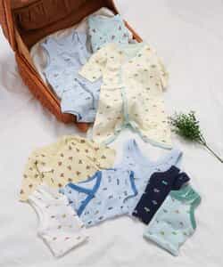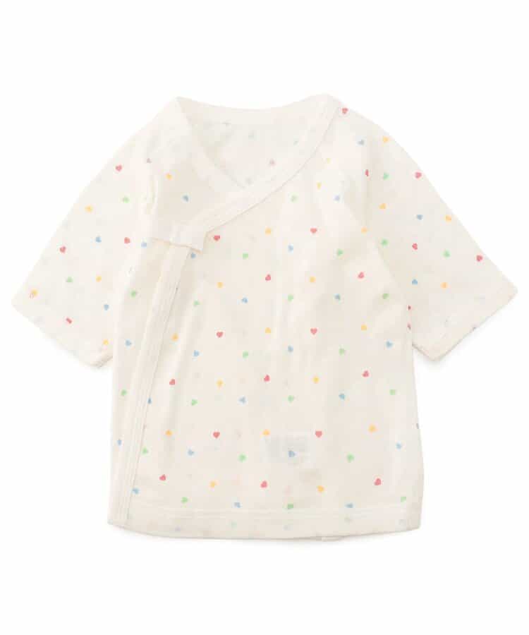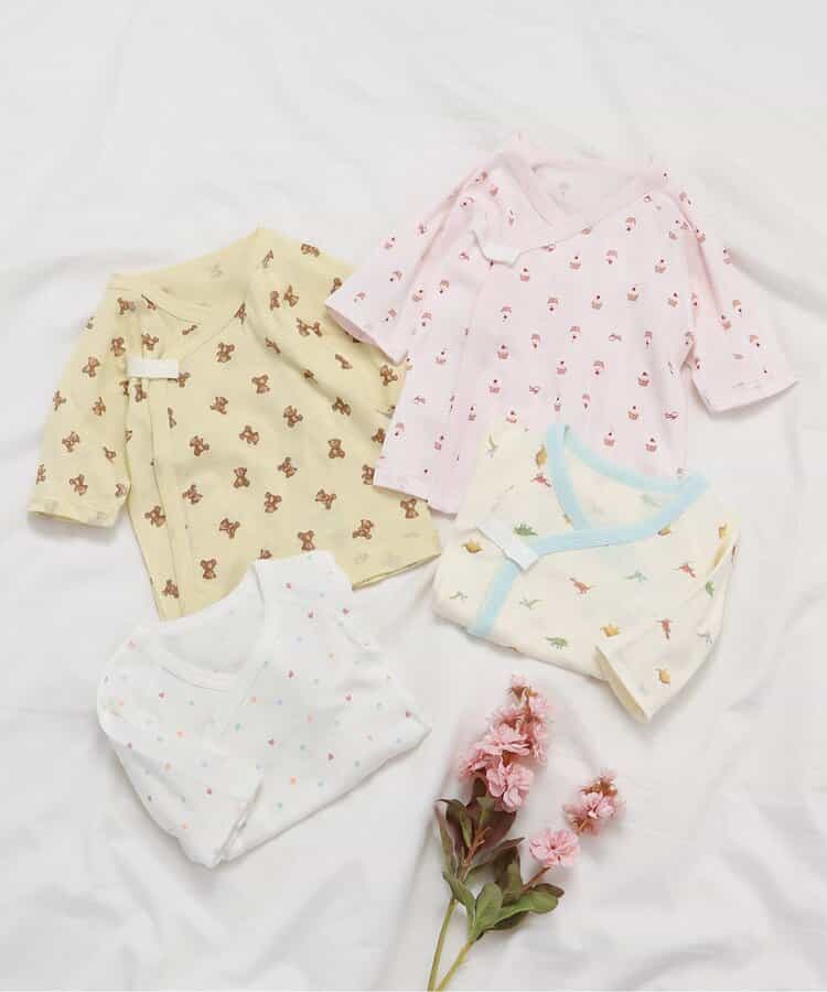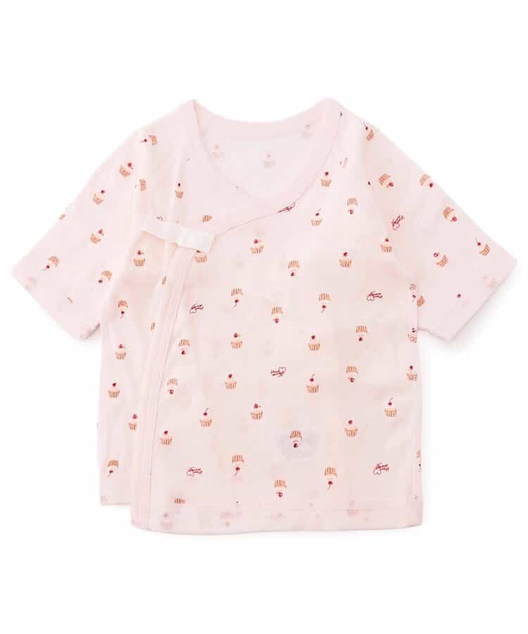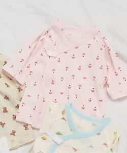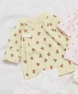 apres les cours(アプレレクール)の肌着「ベビー半袖フライス短肌着 総柄」は、やさしい色合いとデザインでベビーギフトや出産祝いにもおすすめ*