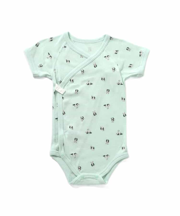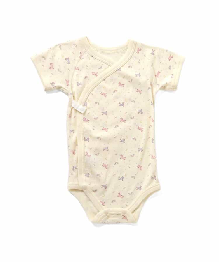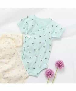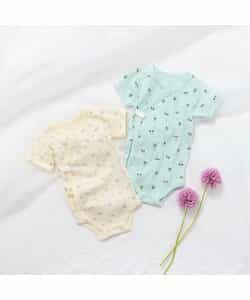 apres les cours(アプレレクール)の肌着「ベビー半袖フライスグレコ肌着 総柄」は、やさしい色合いとデザインでベビーギフトや出産祝いにもおすすめ*