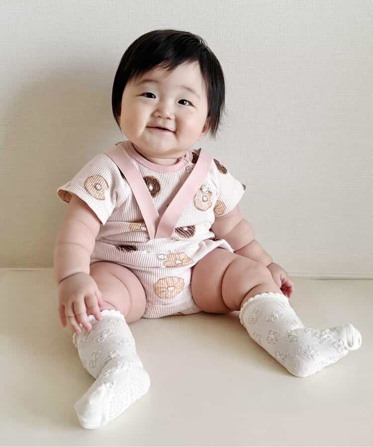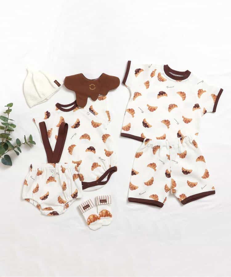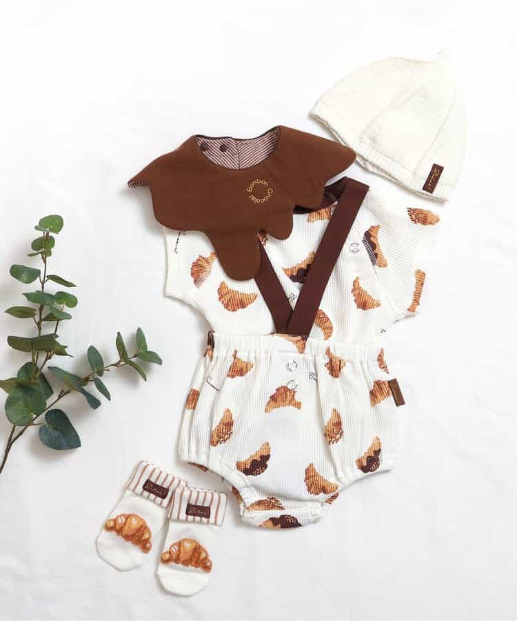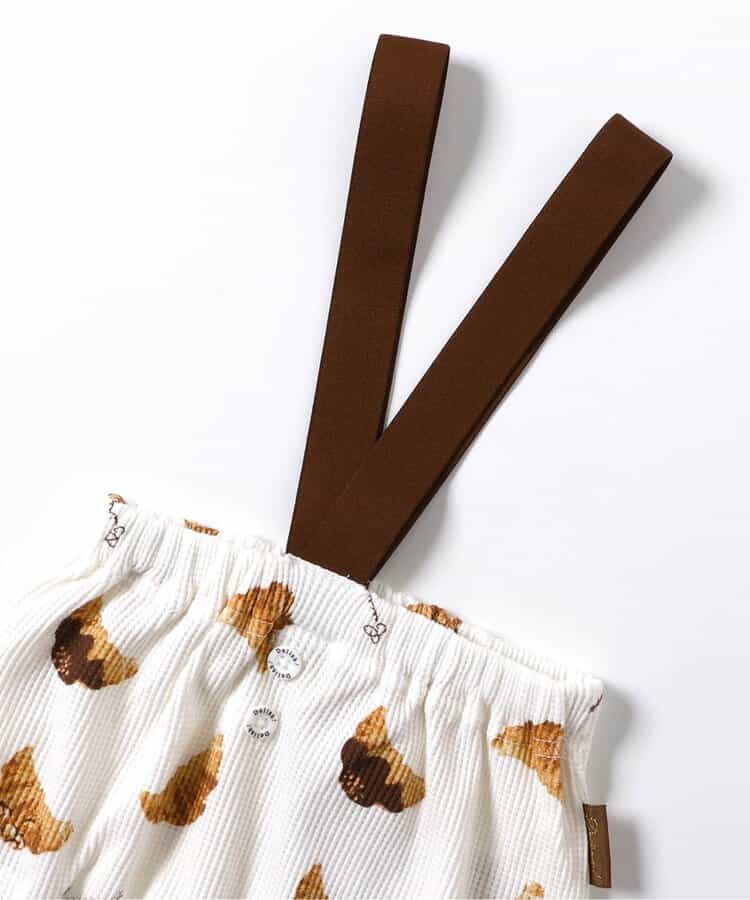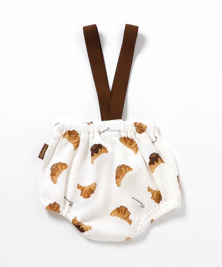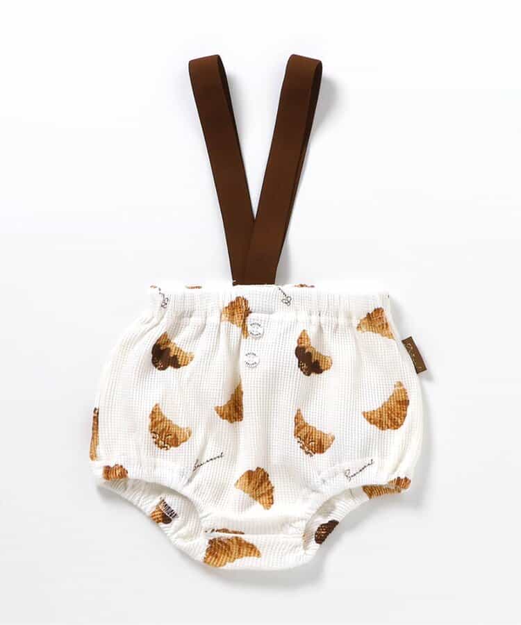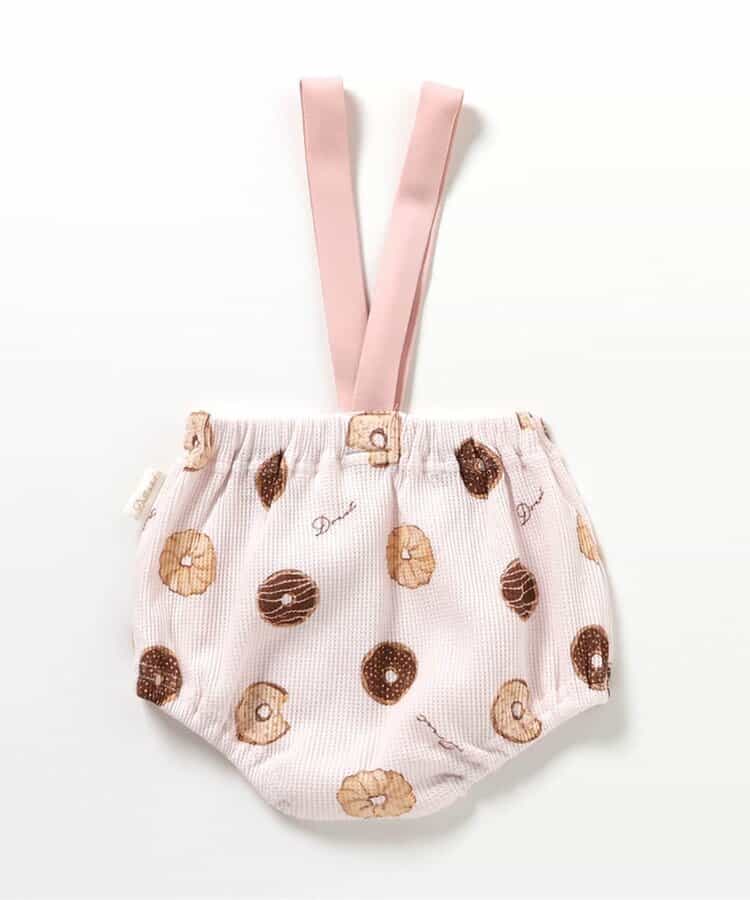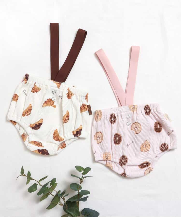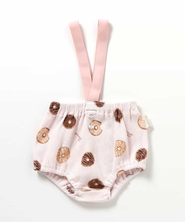 apres les cours(アプレレクール)の雑貨・小物「おやつ柄サスペンダー付きブルマ」は、やさしいニュアンスのナチュラルなデザイン。ベビーのコーデにおしゃれさをプラス♪