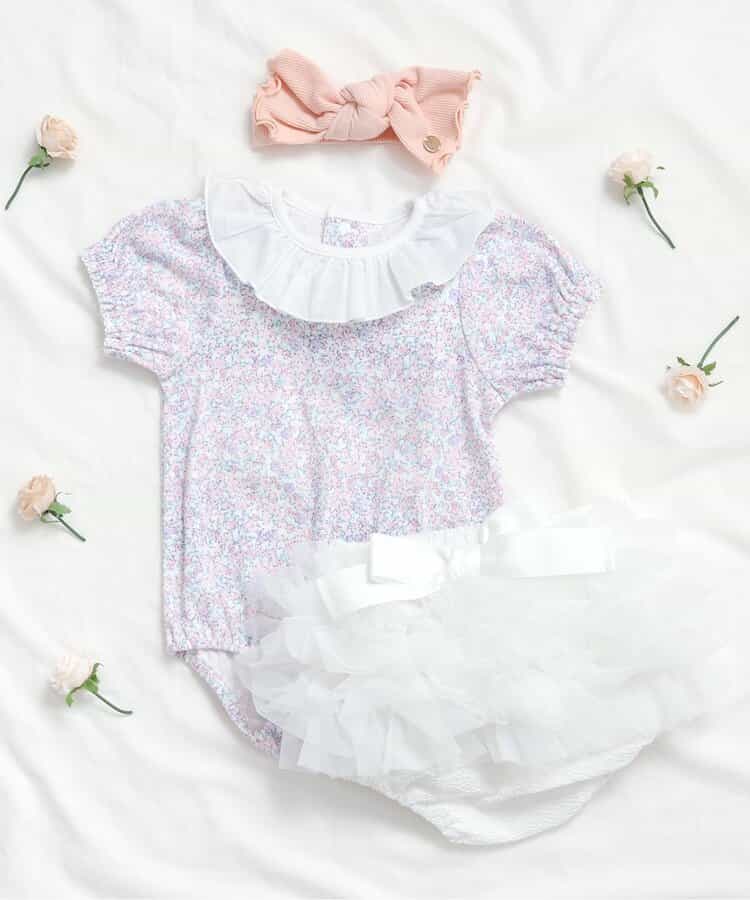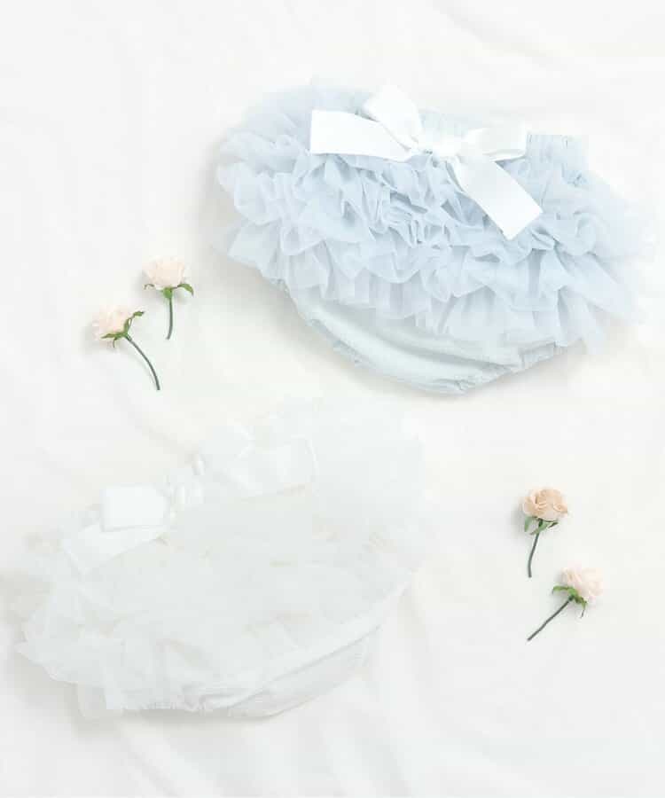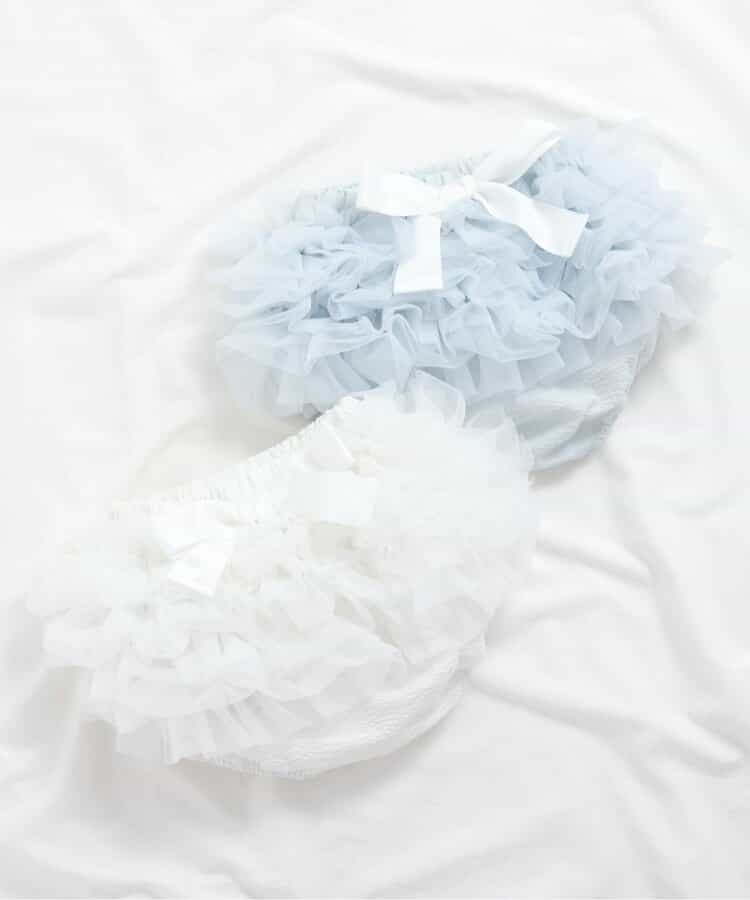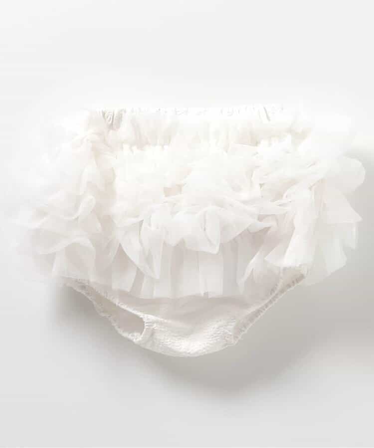 apres les cours(アプレレクール)の雑貨・小物「ボリュームフリルブルマ」は、やさしいニュアンスのナチュラルなデザイン。ベビーのコーデにおしゃれさをプラス♪