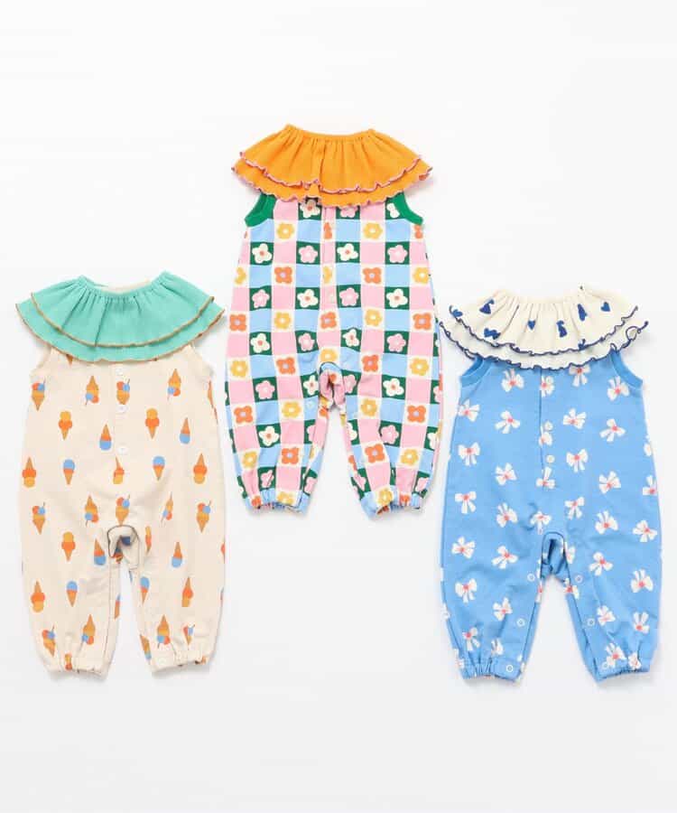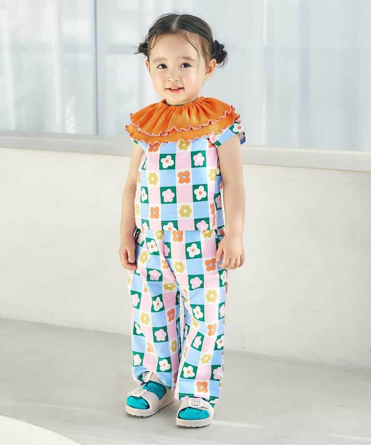 ポップな総柄×フリルのバランスがちょうどよく、ぐんとおしゃれ見え♪
