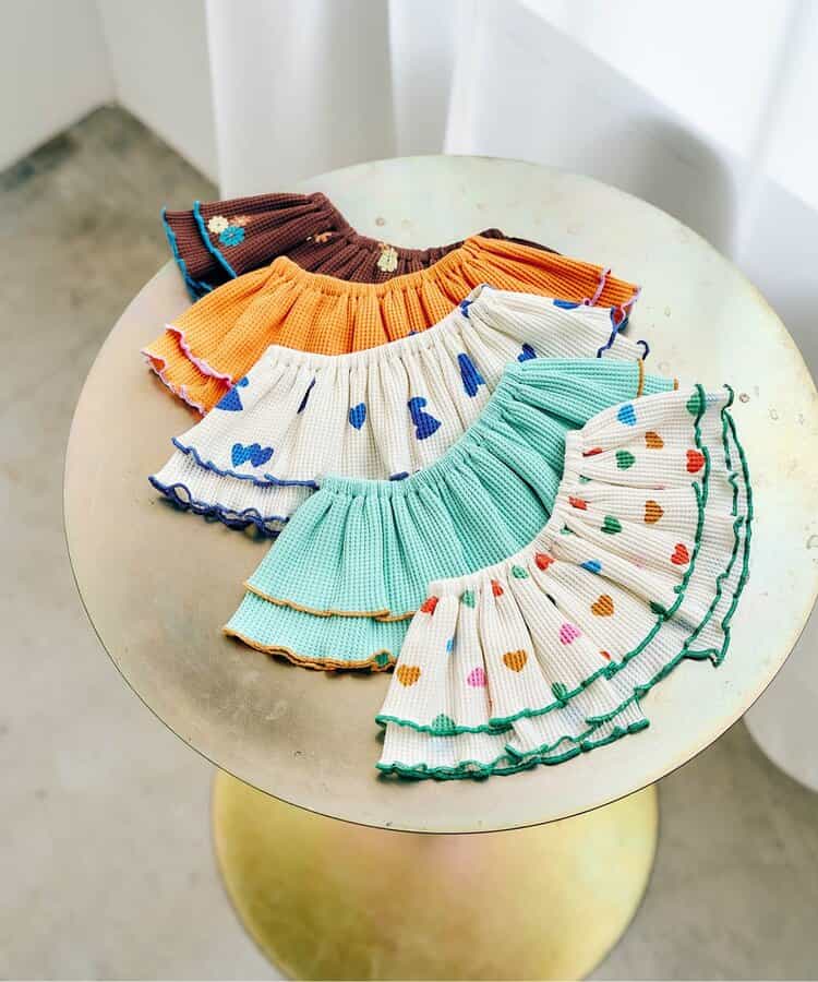 やわらかいワッフル生地に、メロウフリルのひらひらがアクセントになって