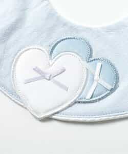 apres les cours(アプレレクール)のスタイ・エプロン「ハートアップリケスタイ」は、おようふくとのスタイリングも楽しめるデザインで、ベビーギフトや出産祝いにもおすすめ*