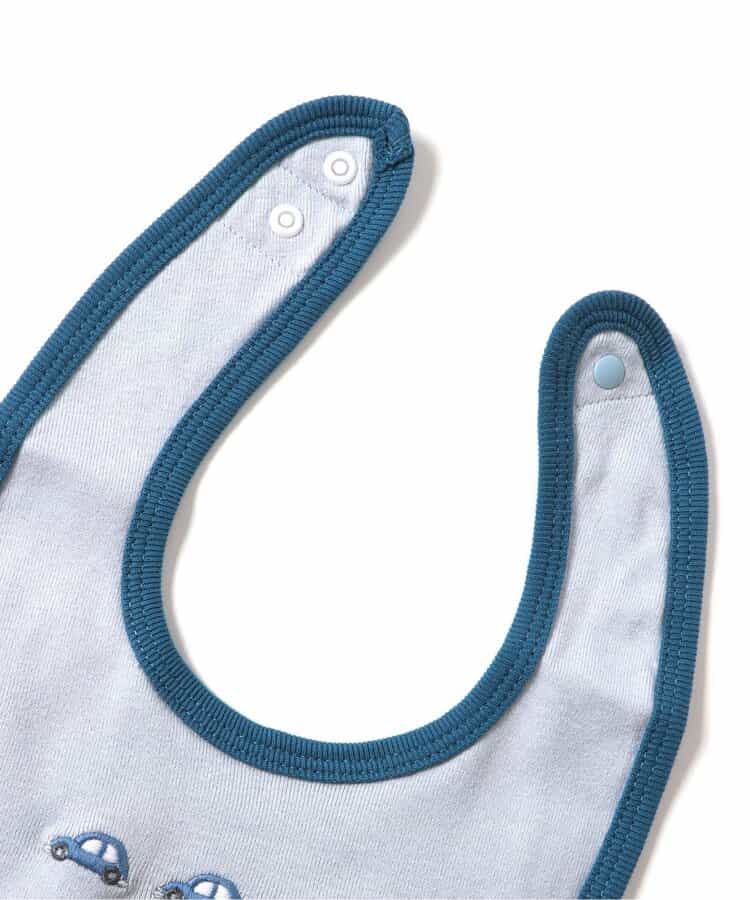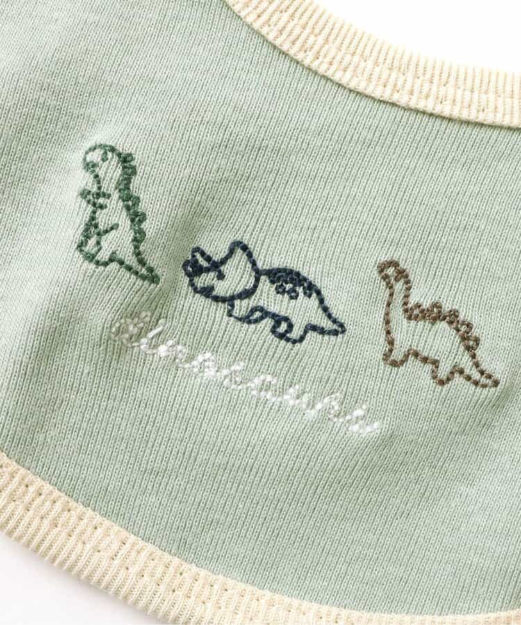 apres les cours(アプレレクール)のスタイ・エプロン「恐竜・車刺繍スタイ」は、おようふくとのスタイリングも楽しめるデザインで、ベビーギフトや出産祝いにもおすすめ*