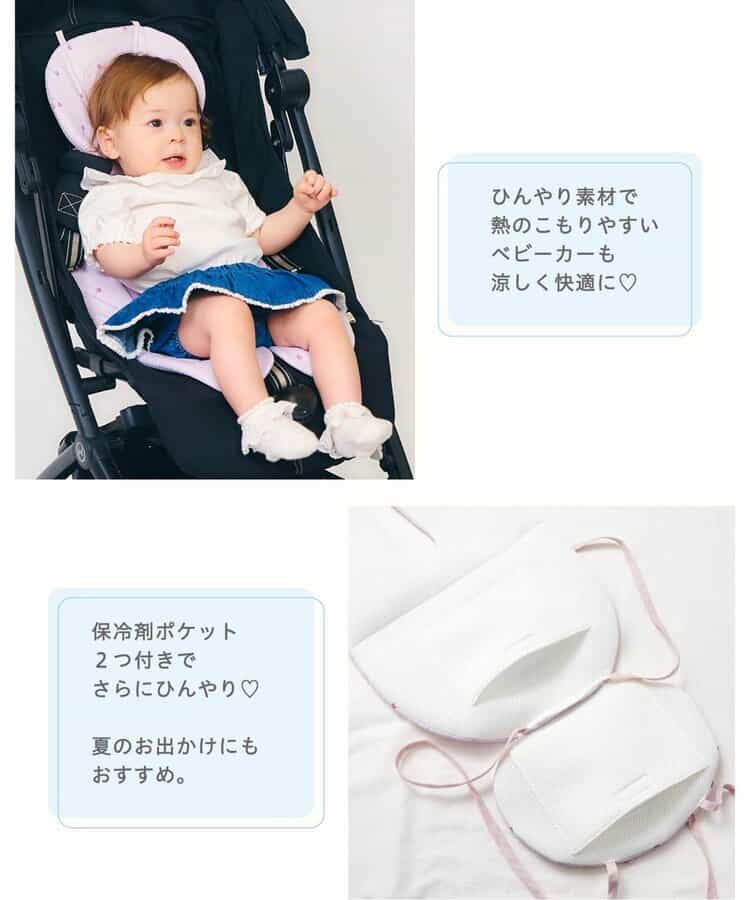 暑い夏もひんやり快適♪表面が接触冷感素材で、ひんやり涼しくご利用いただけます。裏面はメッシュ素材で通気性よく保てます。また、保冷剤収納ポケットもついているので、保冷剤を入れてさらに快適に!ICE RING(R) CASEのようなカチカチにならない保冷剤がおすすめです◎また、ベビーカーだけでなく、チャイルドシートやベビーチェアにも取り付け可能!体温が高い赤ちゃんの、熱中症対策にぴったりのベビーカーシートです。