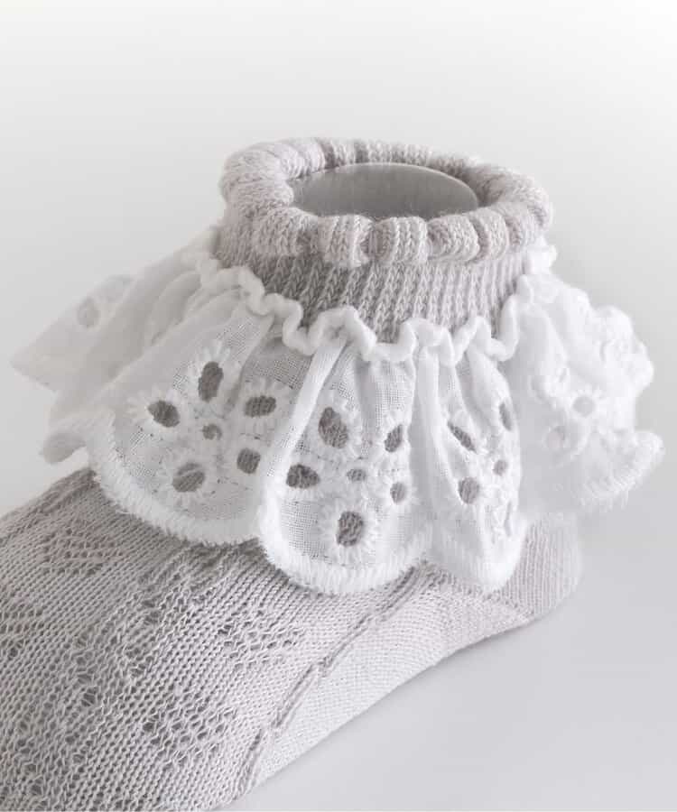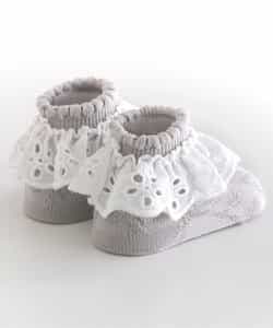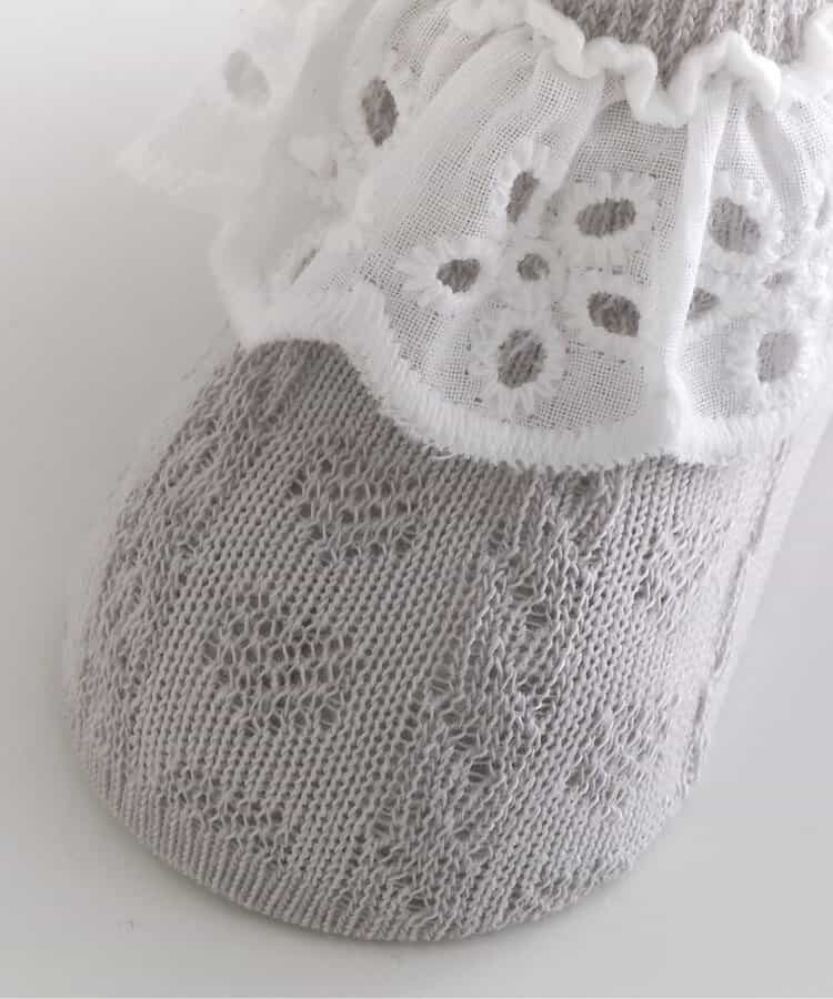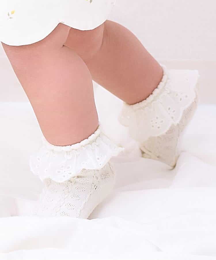 apres les cours(アプレレクール)のタイツ・ソックス「レースフリルベビーソックス」は、足元からおしゃれになれるデザイン。おようふくとのスタイリングも楽しんで。靴下のSS・S・10-12cm・13-15cm、タイツの70-80cm・80-90cm・90-100cmには基本的に靴下に滑り止め加工がございます。(一部除外あり)
