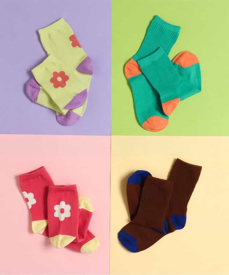 apres les cours(アプレレクール)のタイツ・ソックス「バイカラー・お花カラフルソックス」は、足元からおしゃれになれるデザイン。おようふくとのスタイリングも楽しんで。靴下のSS・S・10-12cm・13-15cm、タイツの70-80cm・80-90cm・90-100cmには基本的に靴下に滑り止め加工がございます。(一部除外あり)