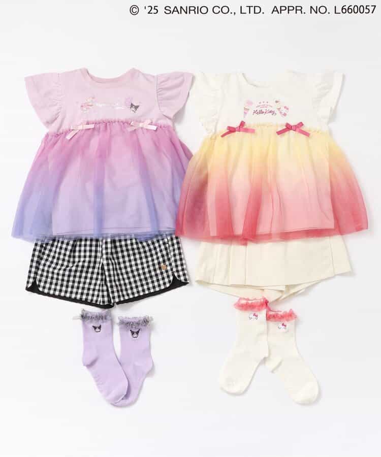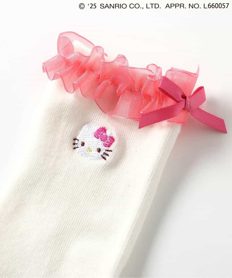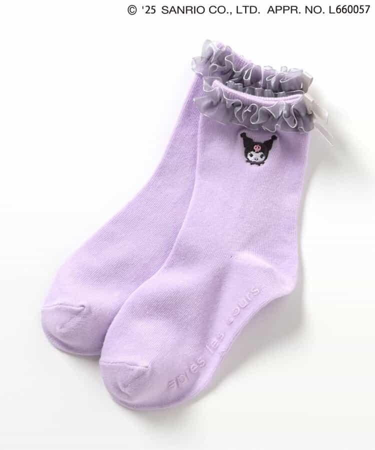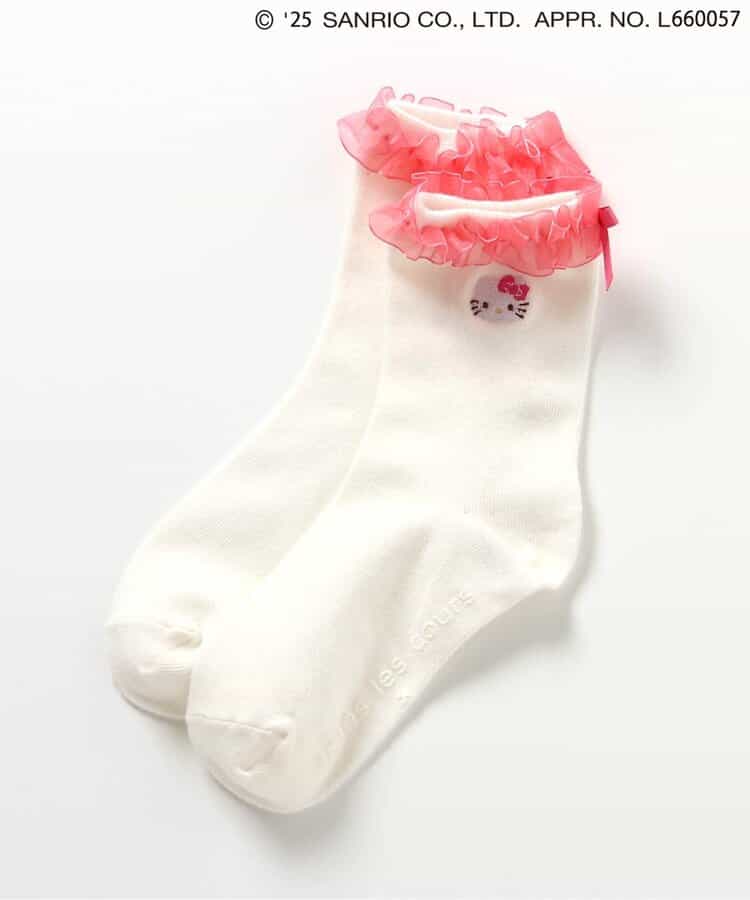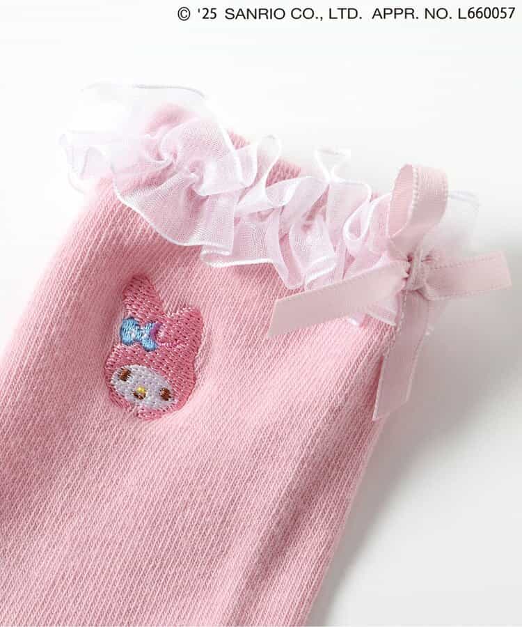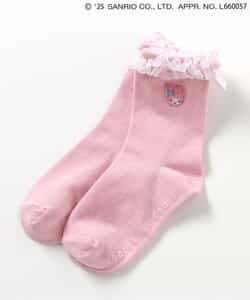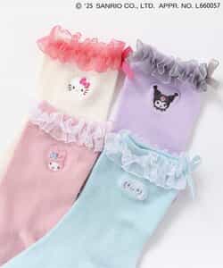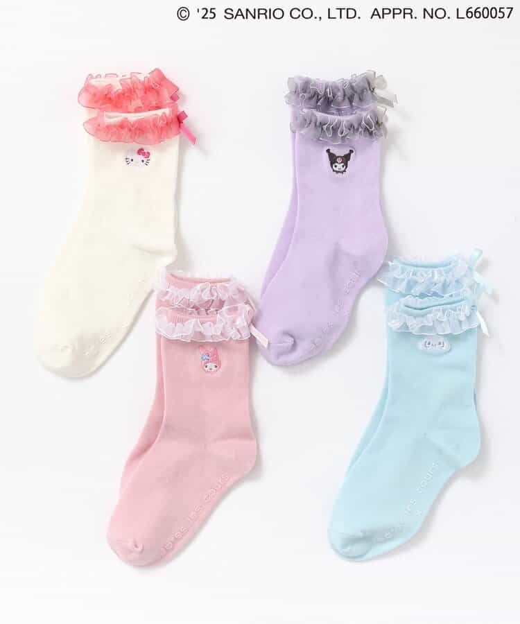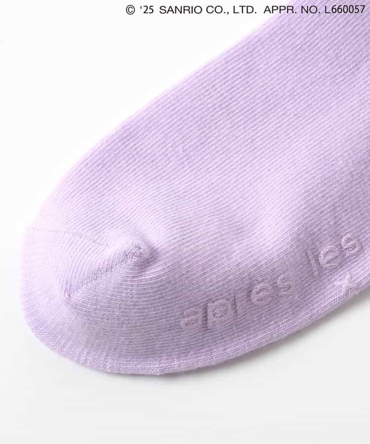 【4/4(金) 10:00~発売予定】≪子供服 apres les coursの「サンリオキャラクターズ」コレクション≫ 足口のフリルとキャラクターの刺繍が施された、とってもキュートなソックス♪ キャラクターに合わせたカラーがポイント。 後ろにリボンがついているのでバックスタイルもかわいい! かわいさが詰まったソックスはデイリーにもおでかけにもおすすめ◎靴下のSS・S・10-12cm・13-15cm、タイツの70-80cm・80-90cm・90-100cmには基本的に靴下に滑り止め加工がございます。(一部除外あり)