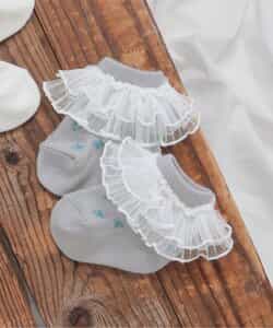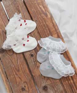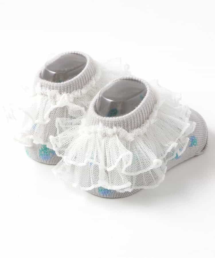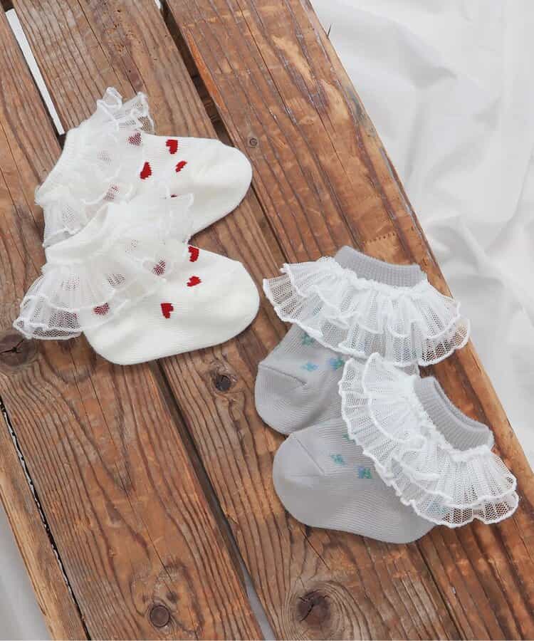 apres les cours(アプレレクール)のタイツ・ソックス「フリル総柄ベビーソックス」は、足元からおしゃれになれるデザイン。おようふくとのスタイリングも楽しんで。
