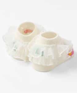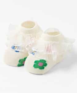 【1/22(木)21:00~販売】apres les cours(アプレレクール)のタイツ・ソックス「フリル総柄ベビーソックス」は、足元からおしゃれになれるデザイン。おようふくとのスタイリングも楽しんで。靴下のSS・S・10-12cm・13-15cm、タイツの70-80cm・80-90cm・90-100cmには基本的に靴下に滑り止め加工がございます。(一部除外あり)