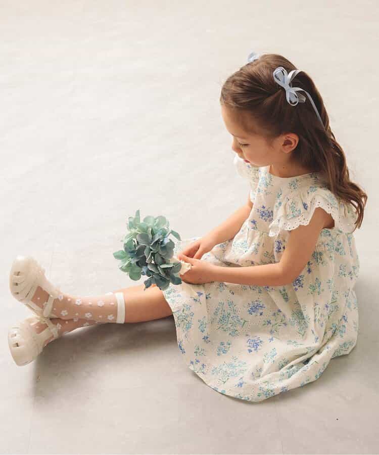 apres les cours(アプレレクール)のタイツ・ソックス「フラワーシアーソックス」は、足元からおしゃれになれるデザイン。おようふくとのスタイリングも楽しんで。靴下のSS・S・10-12cm・13-15cm、タイツの70-80cm・80-90cm・90-100cmには基本的に靴下に滑り止め加工がございます。(一部除外あり)