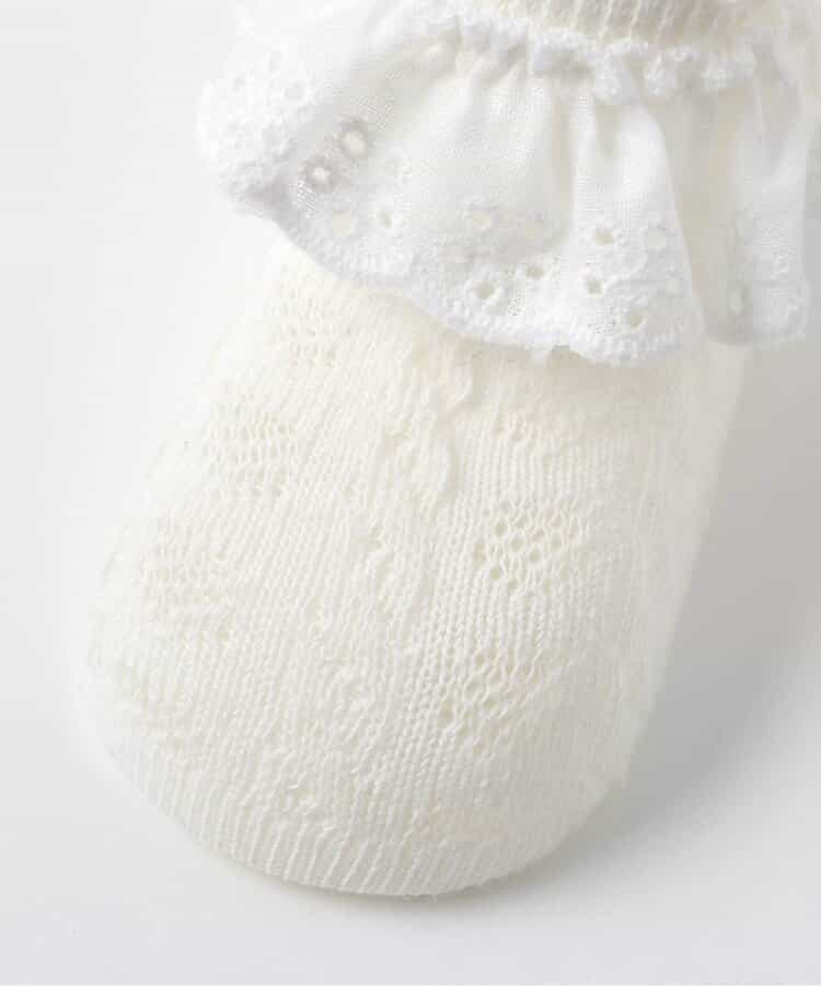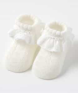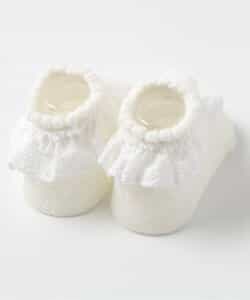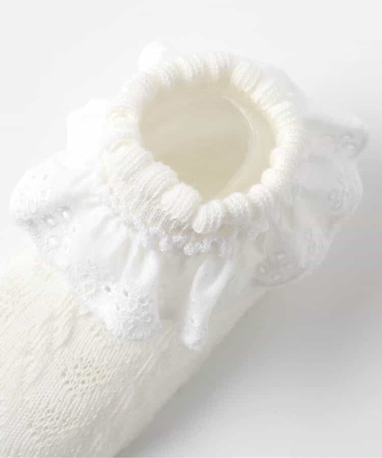 【1/22(木)21:00~販売】apres les cours(アプレレクール)のタイツ・ソックス「レースフリルソックス」は、足元からおしゃれになれるデザイン。おようふくとのスタイリングも楽しんで。靴下のSS・S・10-12cm・13-15cm、タイツの70-80cm・80-90cm・90-100cmには基本的に靴下に滑り止め加工がございます。(一部除外あり)