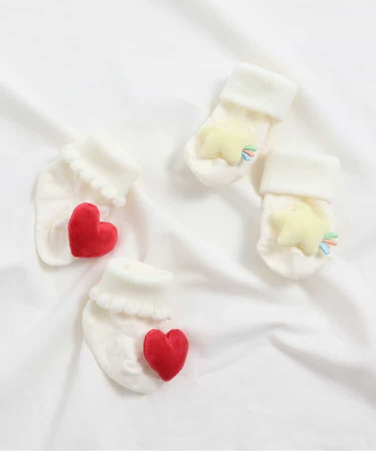 【1/22(木)21:00~販売】apres les cours(アプレレクール)のタイツ・ソックス「ハート&星モチーフソックス」は、足元からおしゃれになれるデザイン。おようふくとのスタイリングも楽しんで。