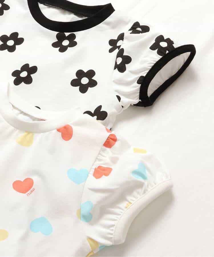 モノクロのお花柄と、カラフルなハート柄の2色展開。