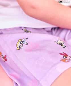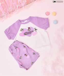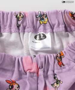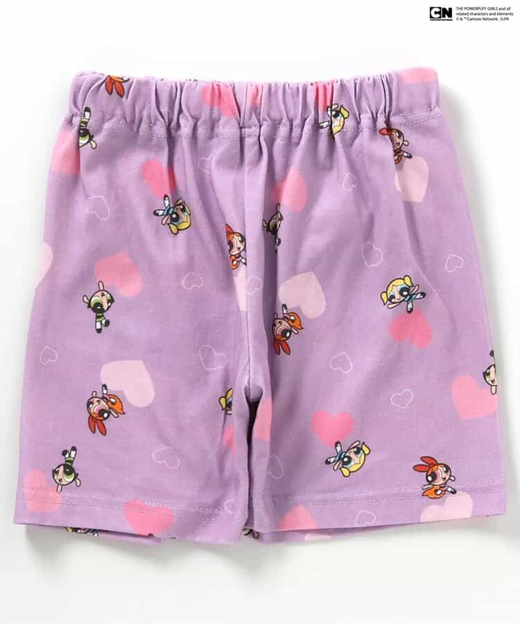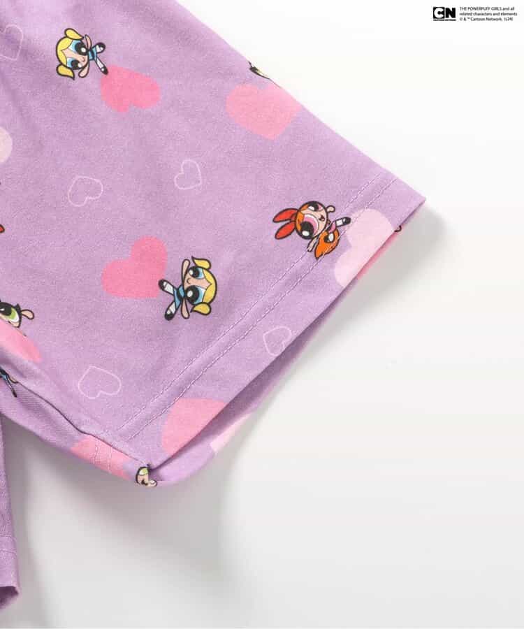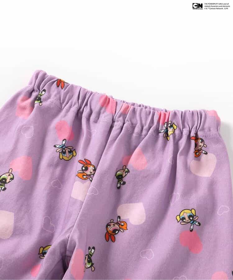 【THE POWERPUFF GIRLS コラボ】「パワーパフ ガールズ」とハートのプリントがかわいいパジャマセット。Tシャツは衿・袖・裾がリブデザインになっていてヨレにくく、デザインのポイントにもなっています♪パジャマとしてはもちろん、普段着としても着られるデザイン。パンツは総柄デザインになっていてとってもキュート!ガールズたちといっしょなら、おやすみのときも、カワイイをスーパーチャージ☆