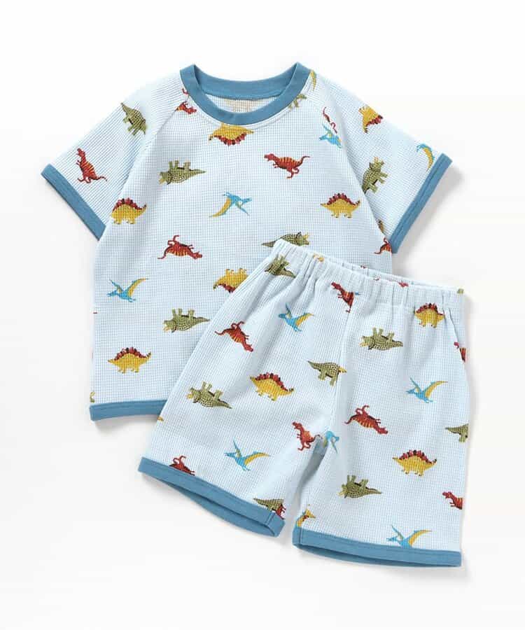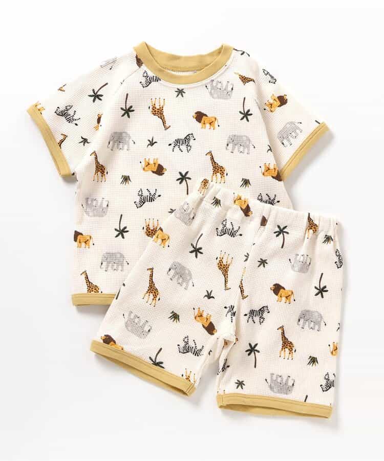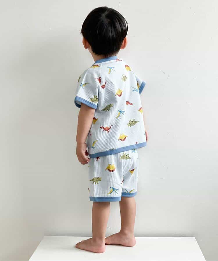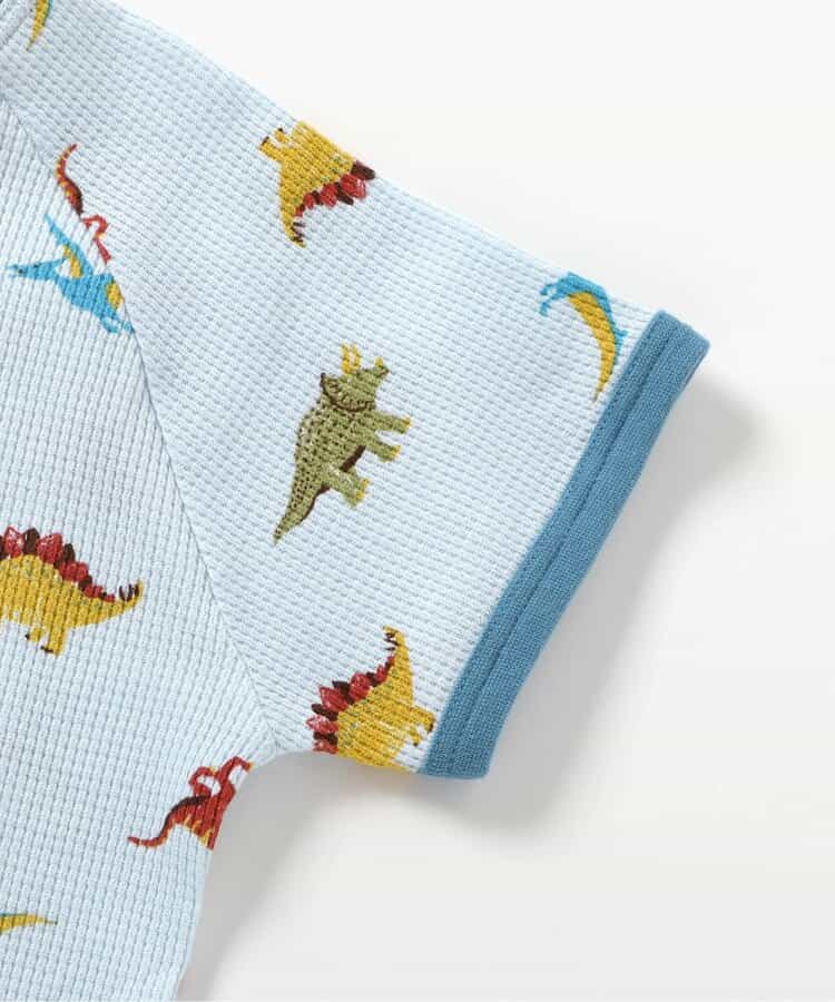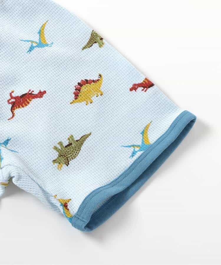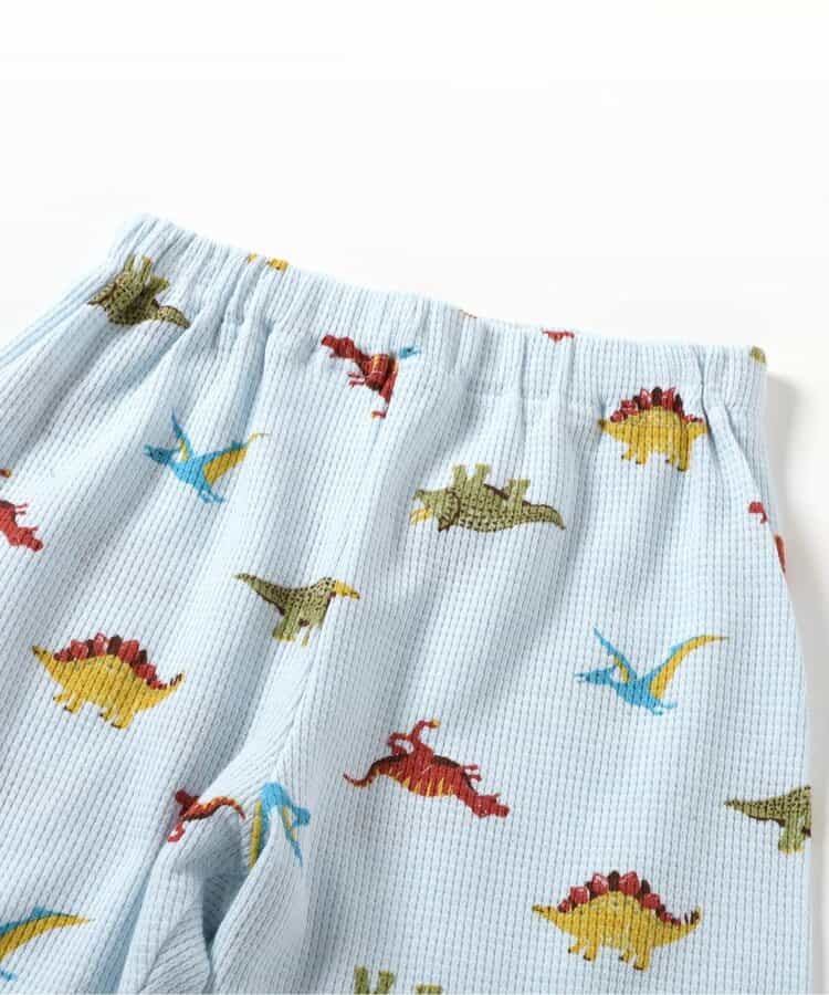 apres les cours(アプレレクール)のパジャマ「サファリ・恐竜柄ワッフルパジャマ」は、おうち時間が楽しく快適になるような着心地とデザイン。お気に入りデザインを選んで、おやすみタイムを過ごしましょう*お揃いのベビーロンパスでリンクコーデを楽しんで♪V233905 WEB限定 ワッフルロンパス