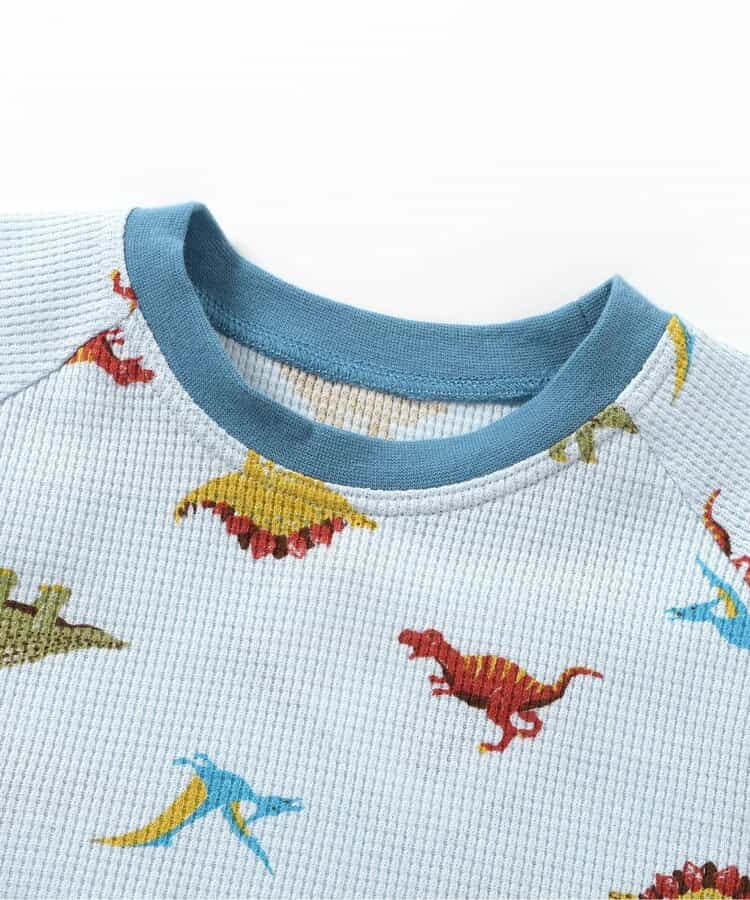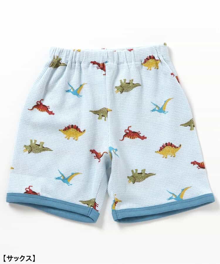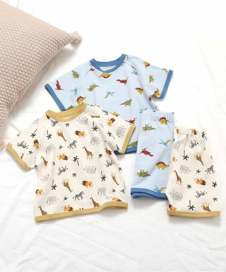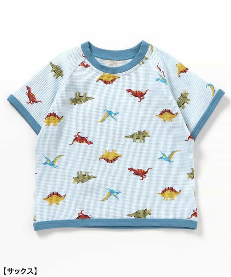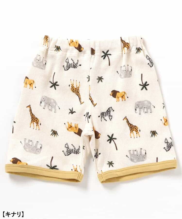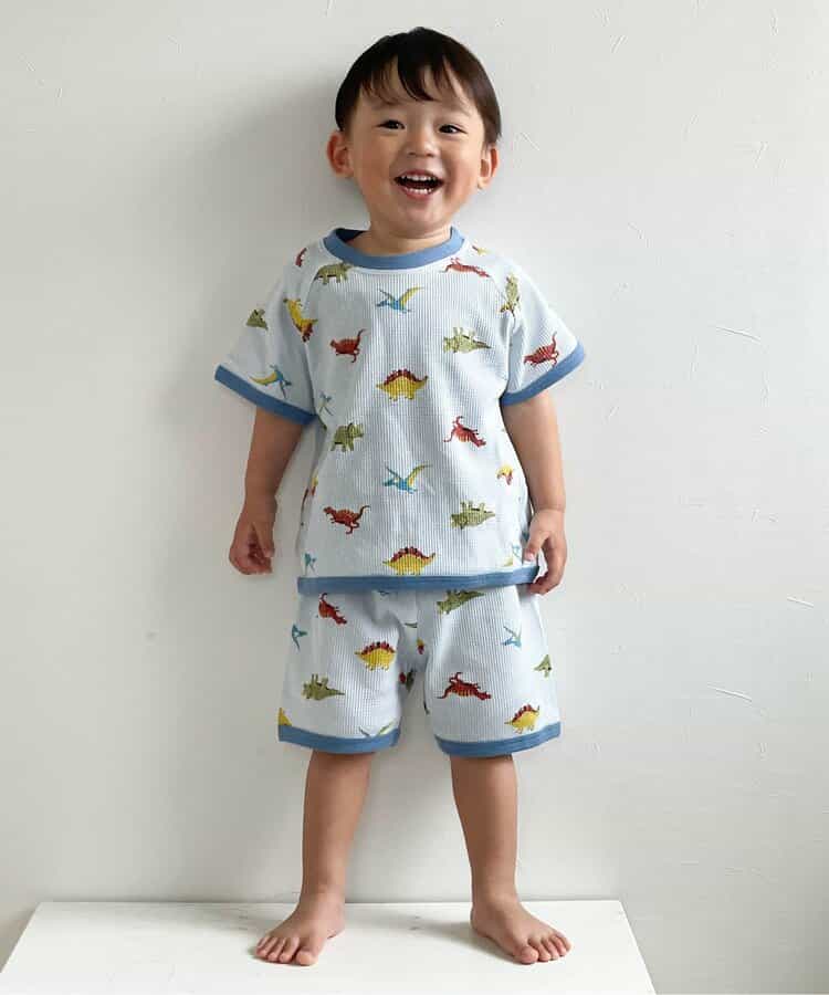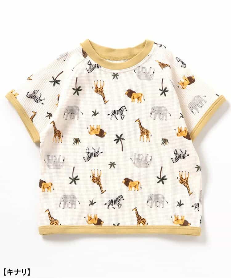 apres les cours(アプレレクール)のパジャマ「サファリ・恐竜柄ワッフルパジャマ」は、おうち時間が楽しく快適になるような着心地とデザイン。お気に入りデザインを選んで、おやすみタイムを過ごしましょう*お揃いのベビーロンパスでリンクコーデを楽しんで♪V233905 WEB限定 ワッフルロンパス