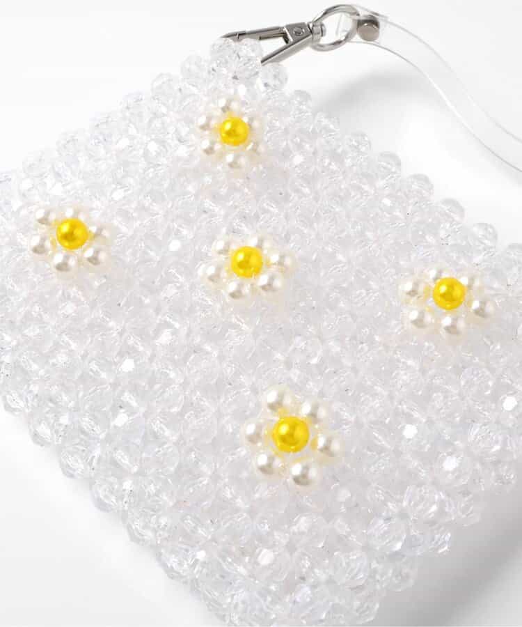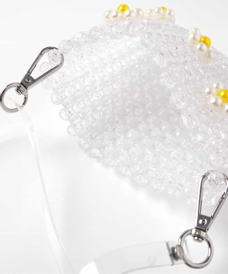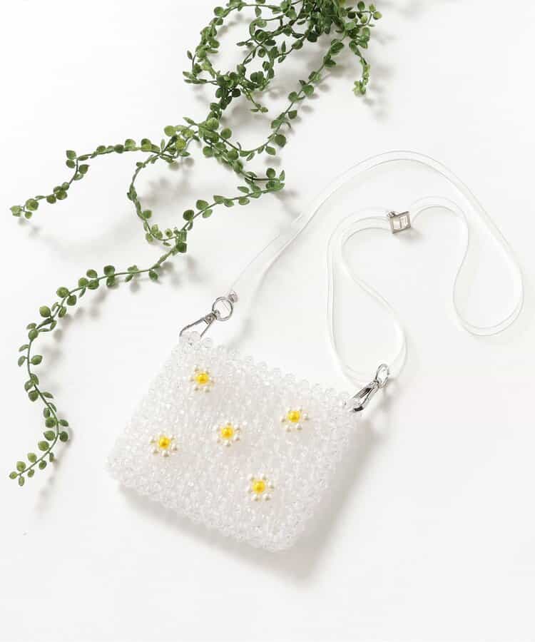 apres les cours(アプレレクール)のバッグ「フラワービーズポシェット」は、おでかけに便利なだけでなく、コーディネートのポイントにも*