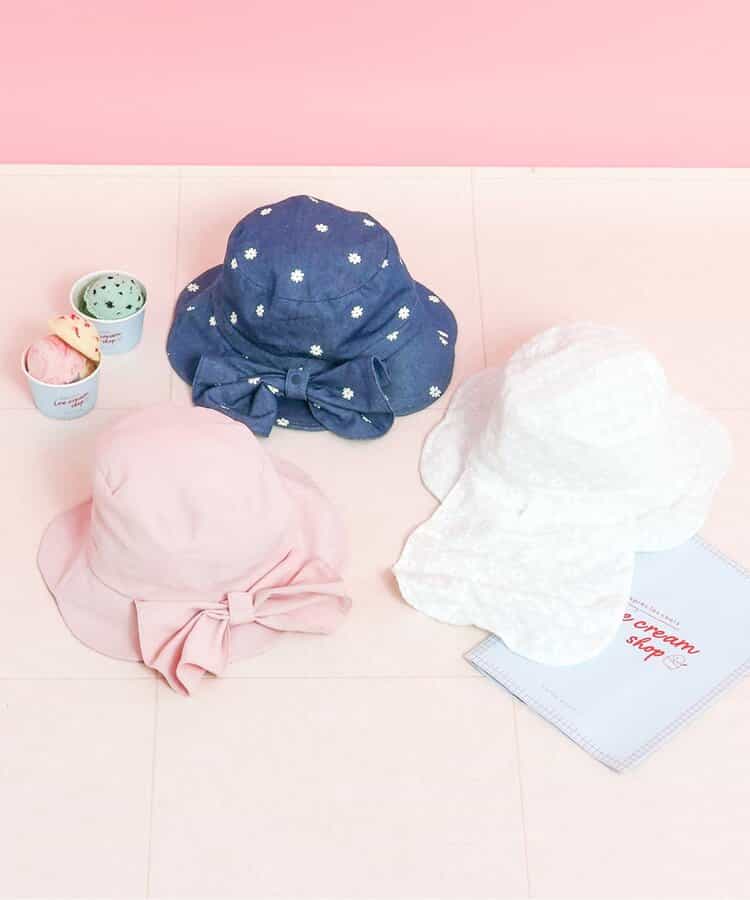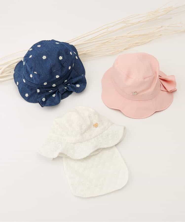 apres les cours(アプレレクール)の帽子「日よけリボン付きスカラップハット」は、どんなウェアとも相性抜群!おしゃれなコーデに仕上げてくれるアイテム!