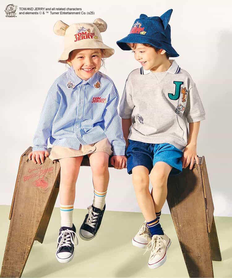 ≪子供服 apres les coursの「トムとジェリー」コレクション≫ トムやジェリーの気分が味わえる♪かわいい耳付きのバケットハット。 コーディネートに取り入れやすいカジュアルなベージュやデニムのカラーは、 それぞれトムやジェリーを意識した色遣い♪ つばのあるバケットハットは春夏の日よけに大活躍! お出かけが楽しくなること間違いなし◎ お洋服もトムとジェリーコレクションであわせて、トムコーデやジェリーコーデを楽しもう♪
