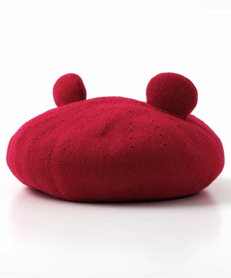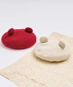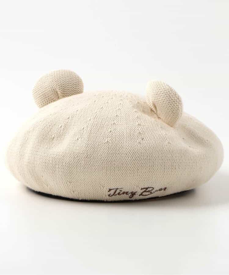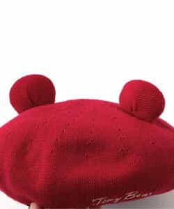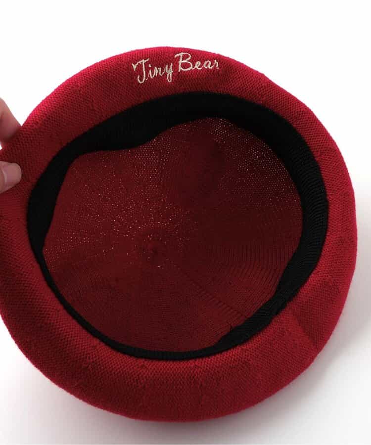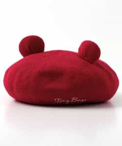 立体的なくまさんの耳がかわいい!tiny bear定番の耳付きベレー帽もコラボ仕様♪春夏も被りやすいサーモベレーです。コーデになじむアイボリーと、ポイントになるレッドの2色展開◎バレンタインのギフトとしてもおすすめ♪