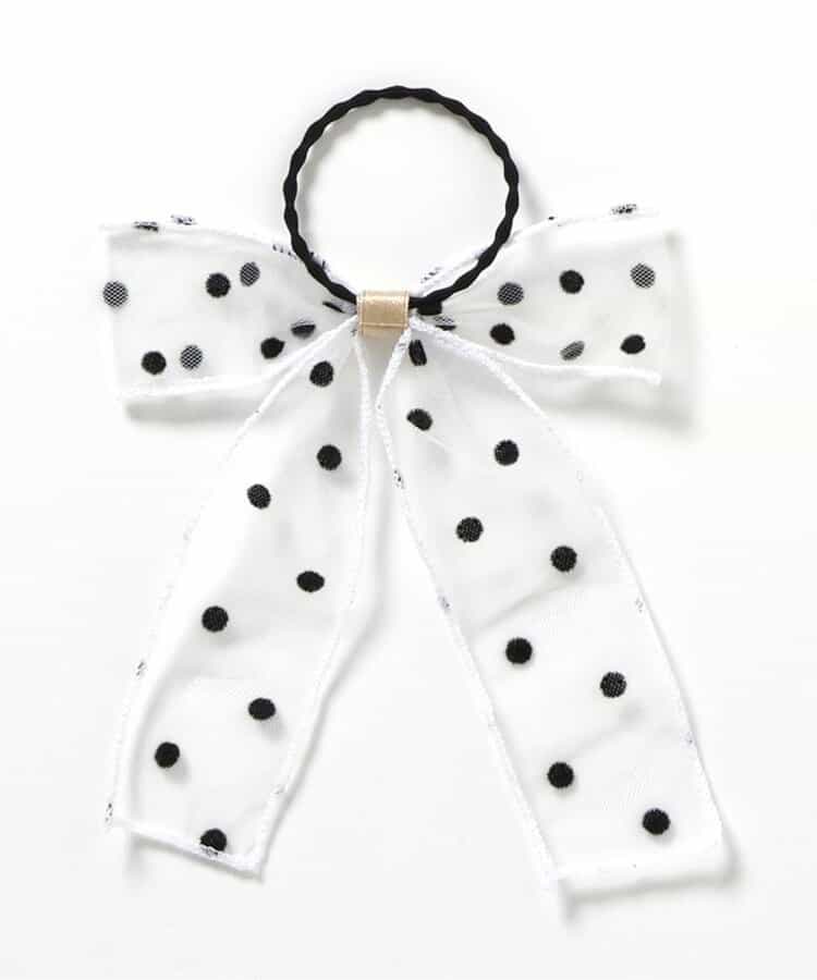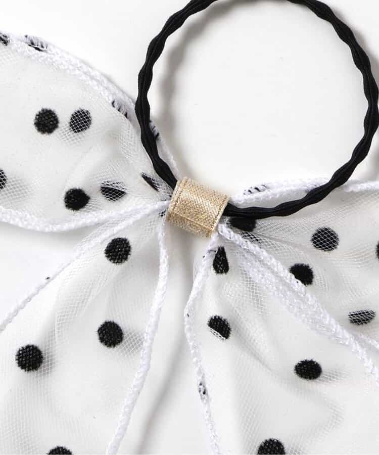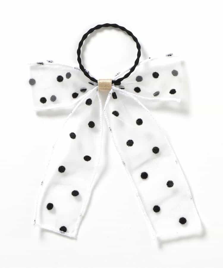 apres les cours(アプレレクール)のアクセサリー「シアードットリボンヘアゴム」は、どんなウェアとも相性抜群!おしゃれなコーデに仕上げてくれるアイテム*