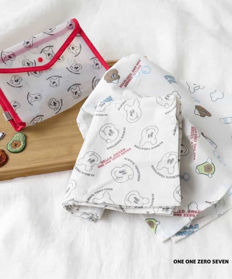 今話題の韓国ブランド「1107(イルイルゴンチル)」が日本で初めてコラボレーション!ブランドの看板となるキャラクターであるゴンチリとゴンシリが「韓国から日本に観光に来ている」というテーマで、コミカルでポップなイラストになって登場。カバンに一枚入れておくと便利なてぬぐいはオリジナルデザインです!