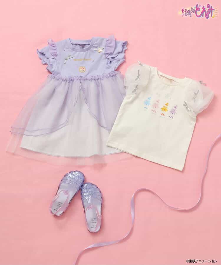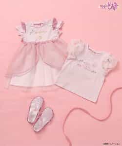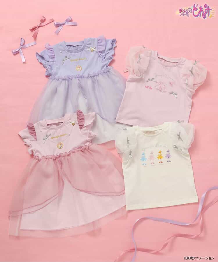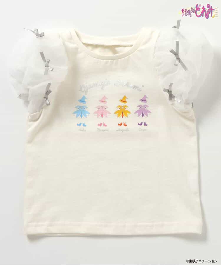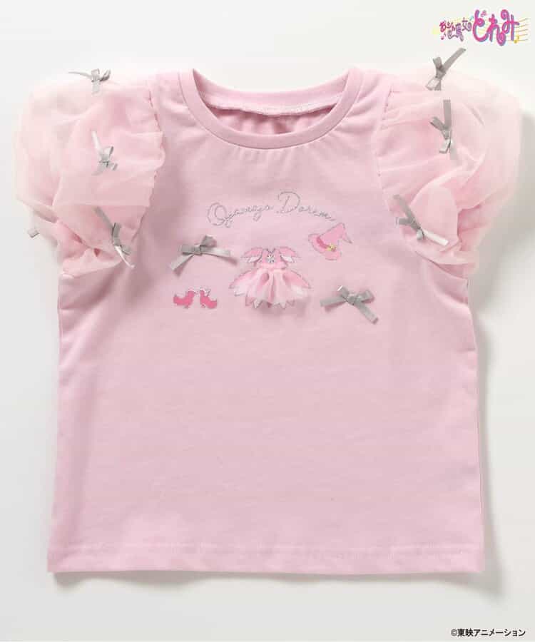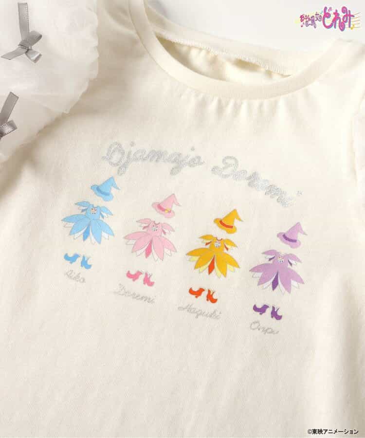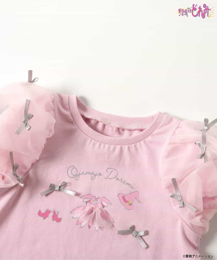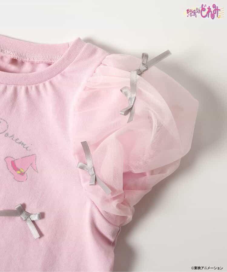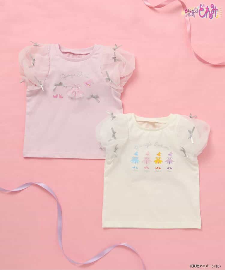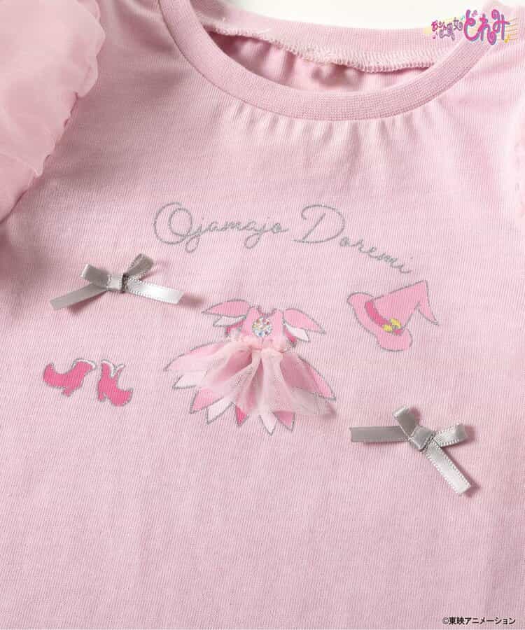 【7/18(金)10:00~販売】【おジャ魔女どれみ × apres les cours 】アプレ レ クールから「おジャ魔女どれみ」とのコラボアイテムが登場!ぽわっとした袖のチュールや、存在感のあるリボンがポイントの半袖Tシャツ♪どれみ・はづき・あいこ・おんぷのコスチュームがプリントされたオフホワイトどれみのコスチュームにリボンやチュールがついたとってもキュートなピンクの2色展開。お友だちやきょうだいみんなで、おそろいコーデもおすすめです。おジャ魔女どれみ チュールワンピースはこちら>><お取り扱いのご注意>素材の特性上、過度の力(引っかけや摩擦等)がかかることにより、ループが飛び出したり、ほつれることがあります。出来るだけ美しくご利用頂くために次のことにご留意下さい。○ 過度の力がかからない様に着用、着脱には十分ご注意下さい。○ 押し洗いを推奨いたします。○ 形を整えてから干して下さい。この商品のプリント部分は洗濯を繰り返すことにより、起毛・光沢が徐々に消失、ひび割れ、脱落することがあります。出来るだけ美しくご利用頂くために次のことにご留意下さい。○ 洗濯、保管の際、プリント面同士が重ならない様にご注意下さい。○ プリント部分のもみ洗いやタンブル乾燥機の使用はお避け下さい。○ 洗濯後、すみやかに広げて下さい。○ 脱水は弱く、形を整えてから干して下さい。○ プリント部分にアイロンを当てないで下さい。