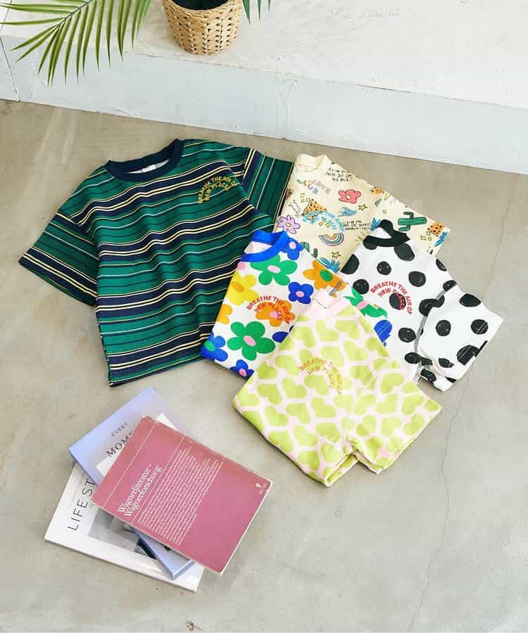apres les cours(アプレレクール)の半袖Tシャツ「アソート総柄配色ステッチTシャツ」は、ナチュラルなスタイルにさりげなくデザインをプラスしたおしゃれアイテム*