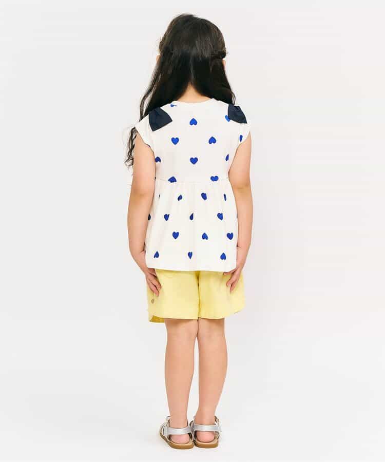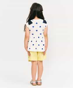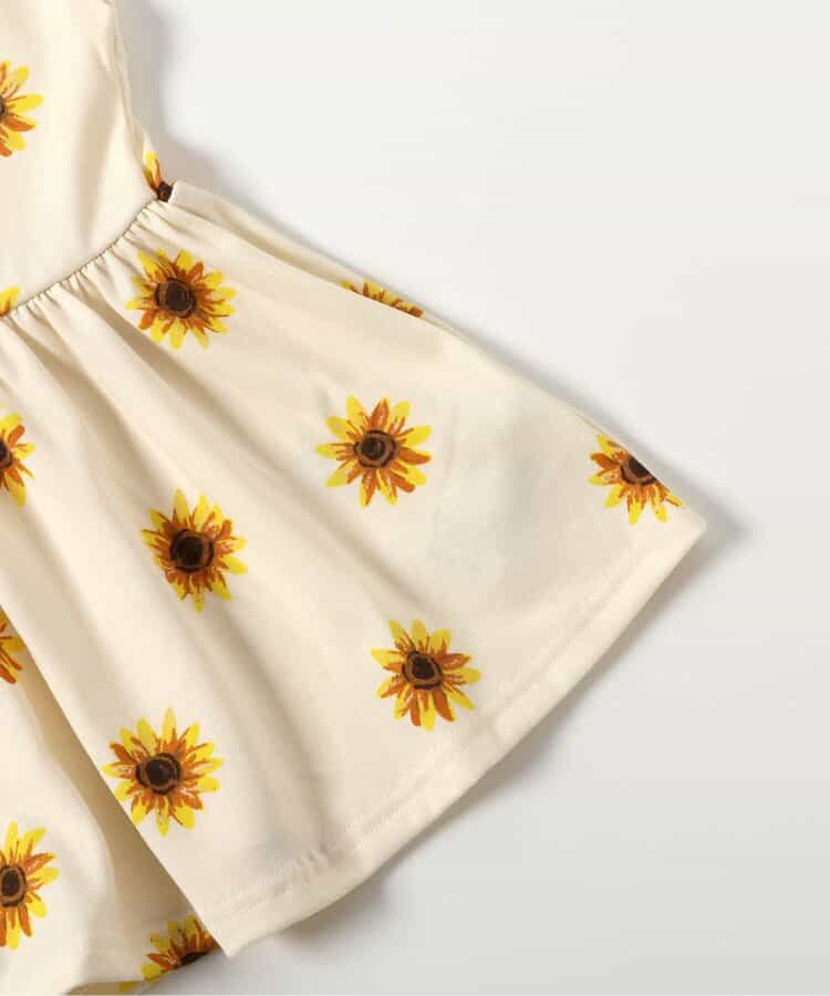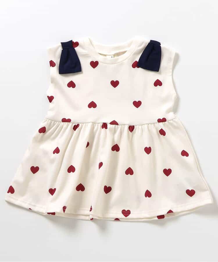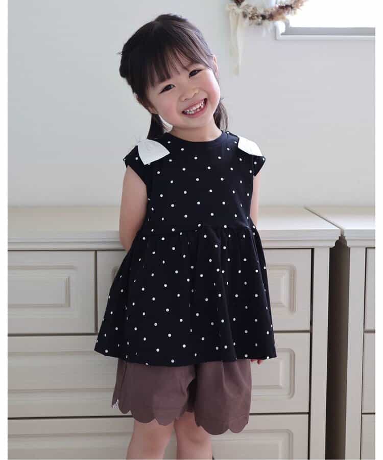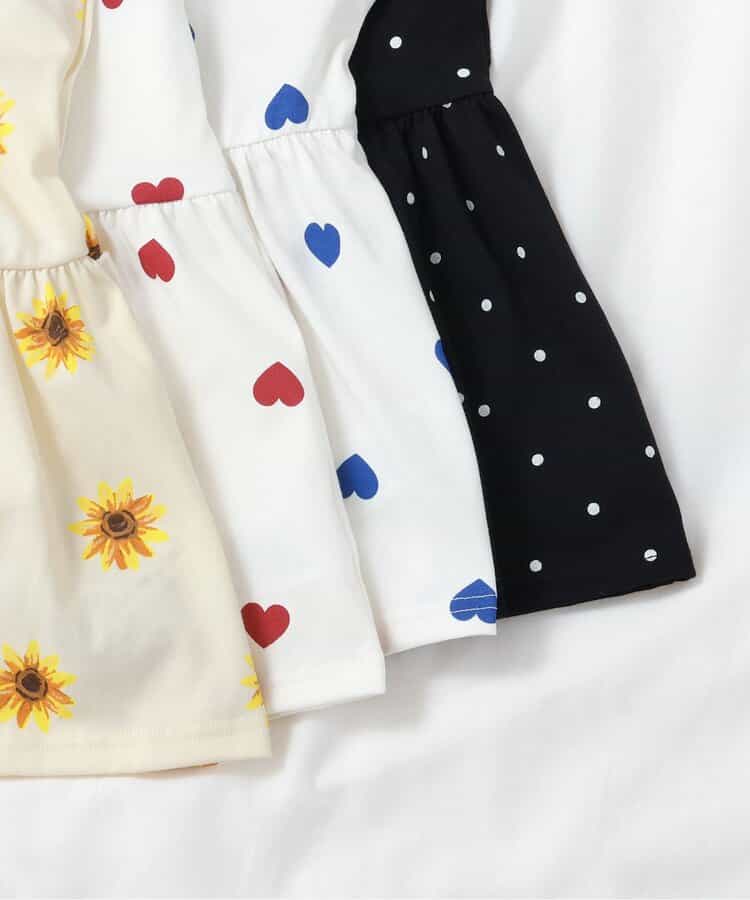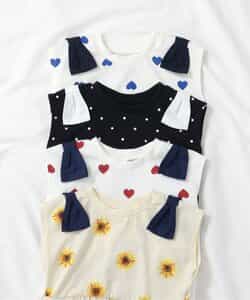 《 apres les cours:夏、あいする? 》肩リボンがワンポイントでカワイイ接触冷感素材の夏トップス♪定番人気の、ドット柄やハート柄夏らしさ満載のひまわり柄。ウエストが切り替えデザインになっていて裾に向かってふわっと広がるシルエットがカワイイ1枚。1枚でさらっと着ても、おしゃれなお出かけコーデが完成します*接触冷感素材で夏の通園通学やおでかけも快適でこの夏ヘビロテしたいトップスです。 ▼ワンピースタイプも販売中▼お揃いの「肩リボン花びらスリーブヒロインワンピース」はこちら >> <お取り扱いのご注意>この商品は着用中の摩擦や洗濯により毛羽の乱れ、毛羽脱落、毛玉が生じることが有ります。できるだけ美しくご利用頂く為に次のことにご留意下さい。○毛玉は毛玉取り器またはハサミで丁寧にカットして下さい。○毛羽が他に付着した際はテープやブラシで除去して下さい。○他の製品とは洗わず、単独でお洗濯して下さい。○タンブル乾燥はお避け下さい。