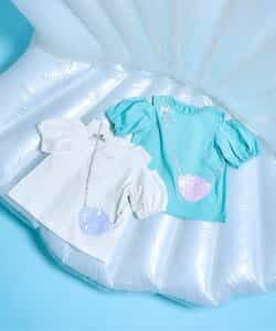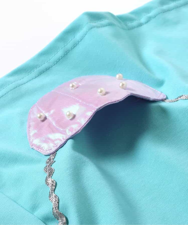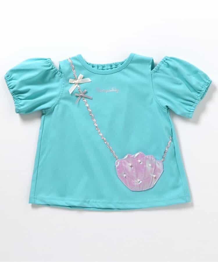 【5/15(木)21:00~販売】接触冷感素材で暑い夏もひんやり快適♪チュニックっぽく着られるAラインのオフショルデザインでちょっぴり大人っぽい印象に。首の後ろがゴムになっているので、着脱もカンタン♪ポシェットは部分のシェルにはオーロラっぽいカラーの生地を使用してシンプルなTシャツにぱっと映えるデザインに。この夏のおでかけにいかがでしょうか?