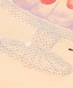 この製品は特殊加工(スパンコール・ラインストーン・スタッド等)を使用しております。永久的なものではなく、着用中の強い摩擦や洗濯を繰り返すことにより、破損したり、光沢が消失していく可能性があります。できるだけ美しくご利用頂く為に次の事にご留意下さい。